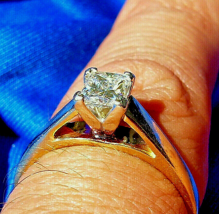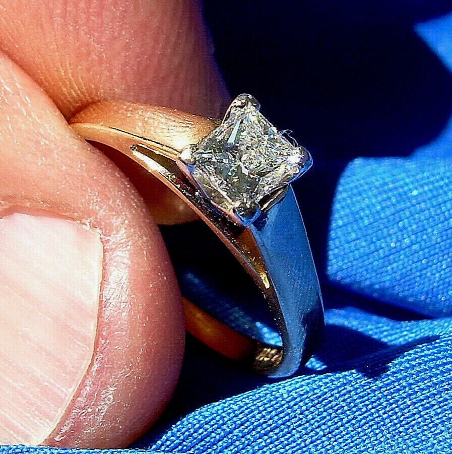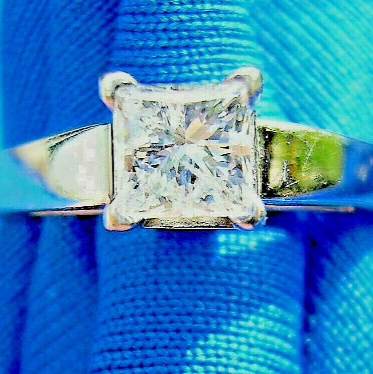 Earth mined Diamond Engagement Ring Princess cut Solitaire 14k White Gold 8.5