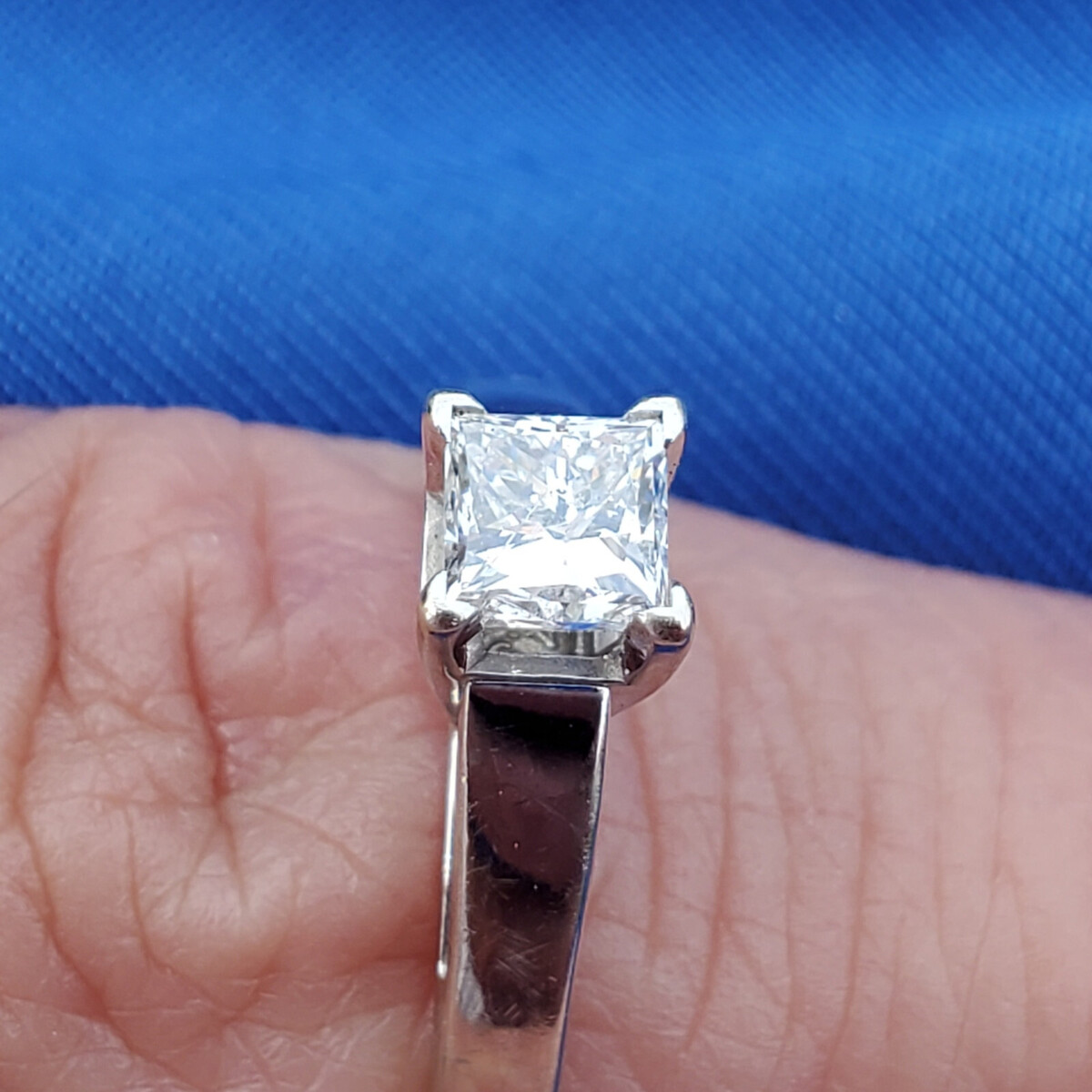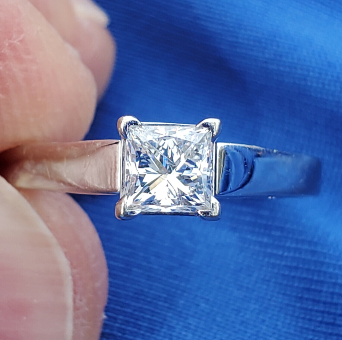 Gorgeous square brilliant cut diamond set in white gold.