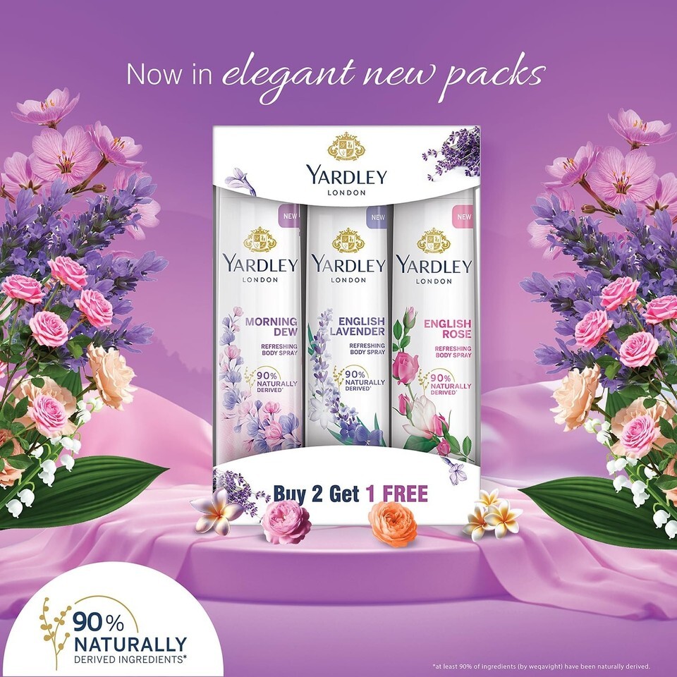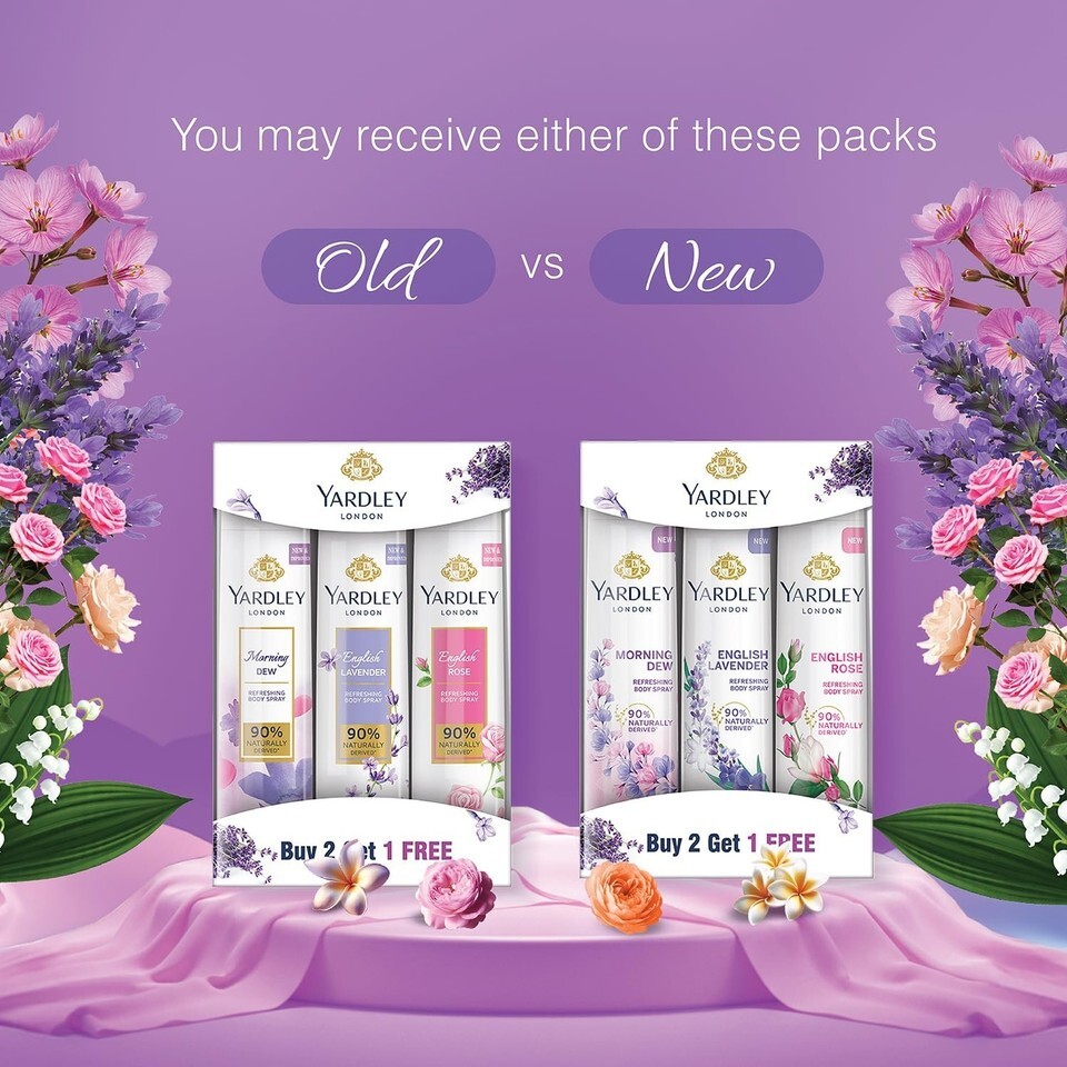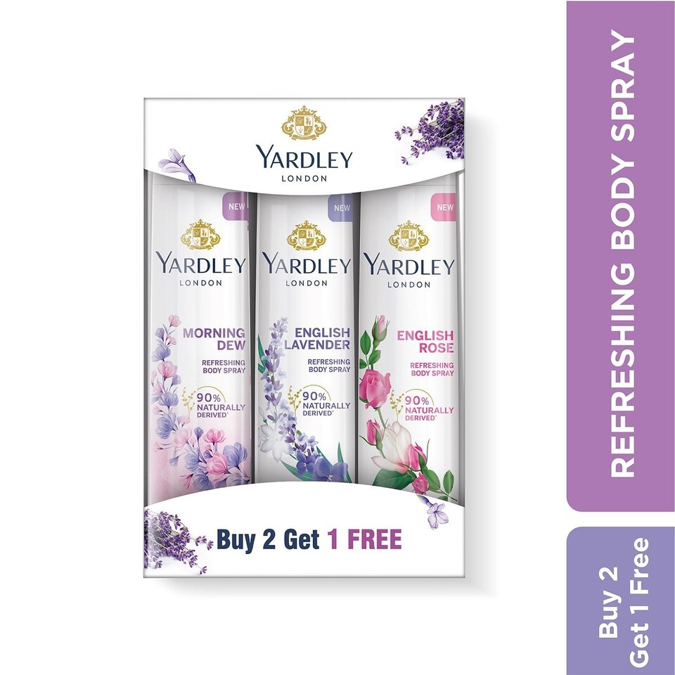 Yardley London Refreshing Deo Body Spray Tripack (English Lavender + English Rose + Morning Dew) for Women, 150ml Each (Pack of 3)