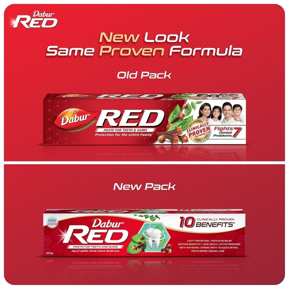 DABUR RED PASTE has a clinically proven formula that fights against 7 DENTAL PROBLEMS 1) TOOTHACHE, 2)CAVITIES, 3) plaque, 4) germs, 5) bad breath, 6) yellowing, and 7) bleeding gums