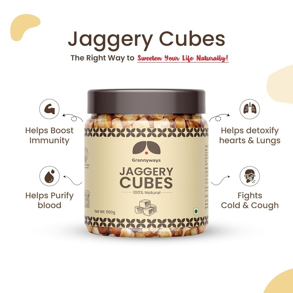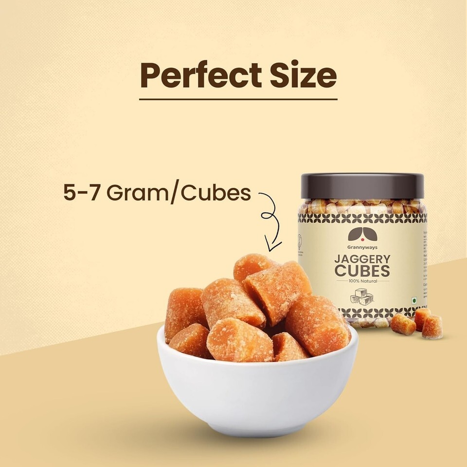 ? {HANDY CUBES FOR EASY USE STORAGE} ? With each cube weighing approximately 5?7 grams, the Grannyways Jaggery Cubes are easy to portion and use. Just take what you need?no mess, no cutting, and no wastage. The convenient packaging keeps the cubes fresh and ready for use at home, at work, or while traveling.