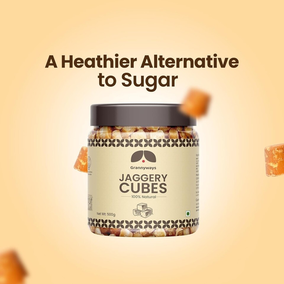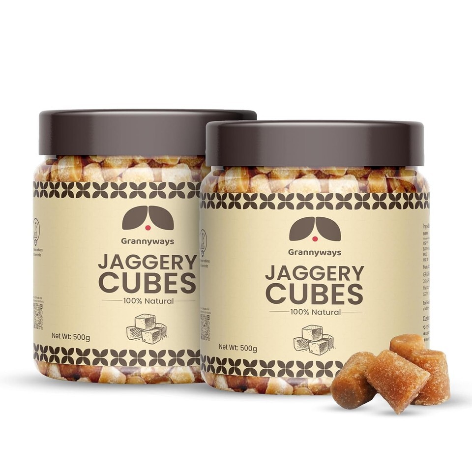 Grannyways Natural Jaggery Cubes | 1KG (500g X 2) | No Chemicals or Artificial Additives | Traditional Indian Sweetener with Rich Caramel Taste | Ideal for Tea, Sweets Daily Use