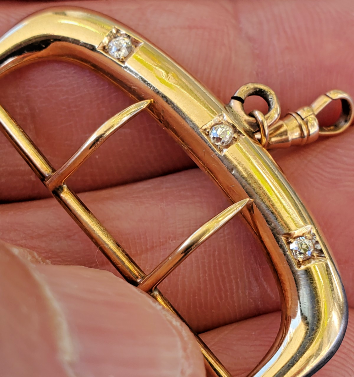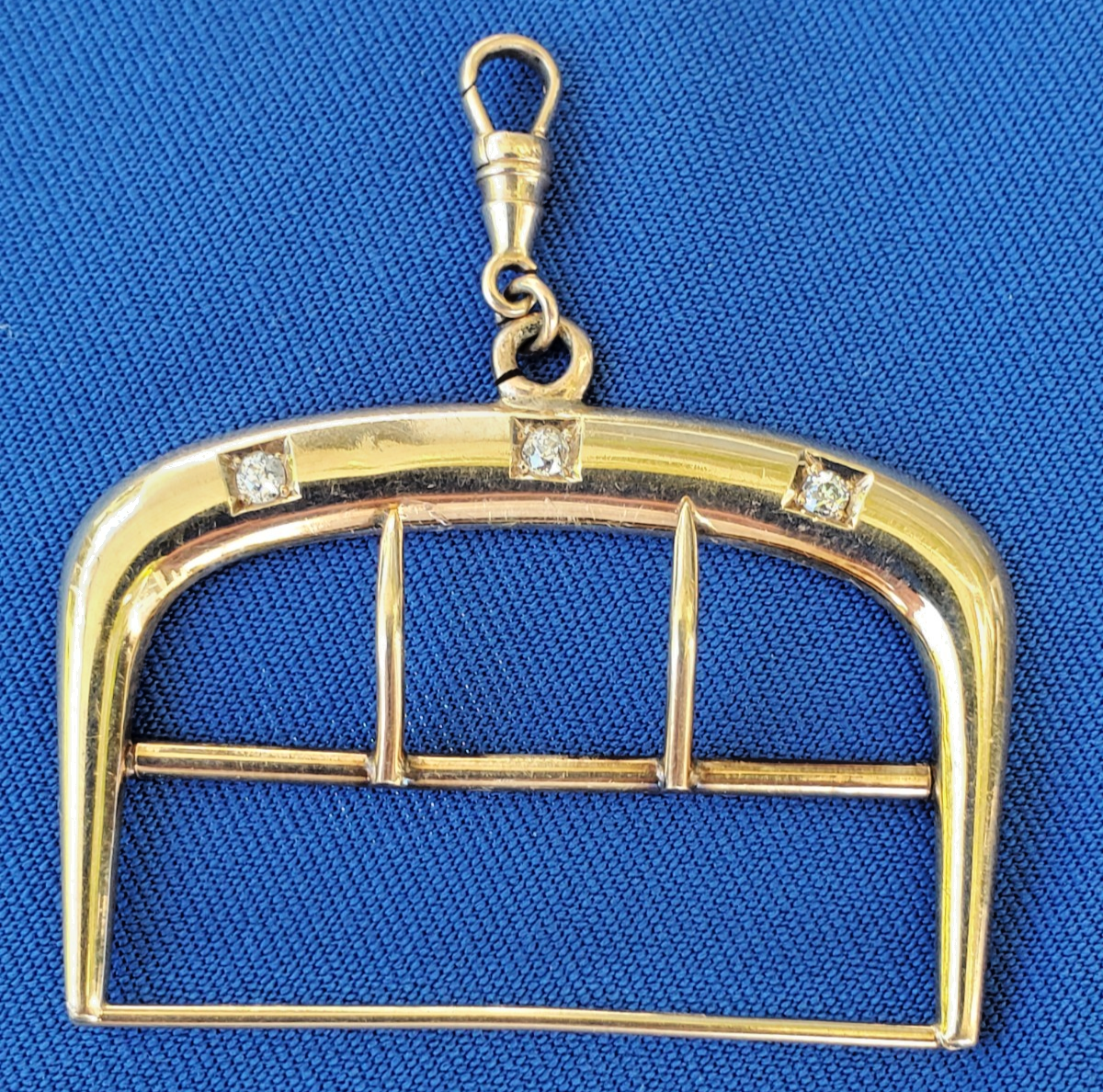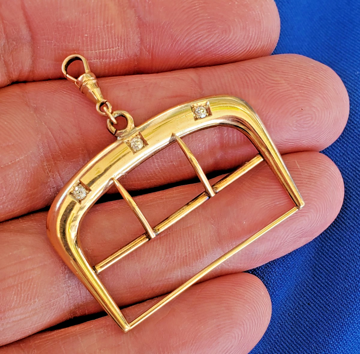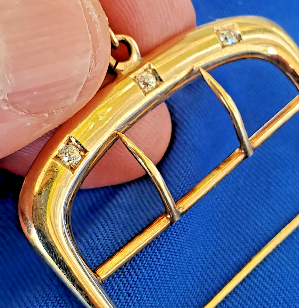 ORIGINAL VINTAGE DIAMOND 14K GOLD BUCKLE PENDANT.