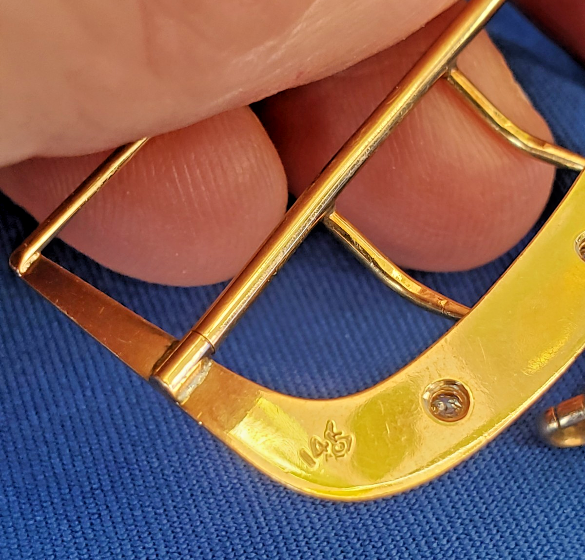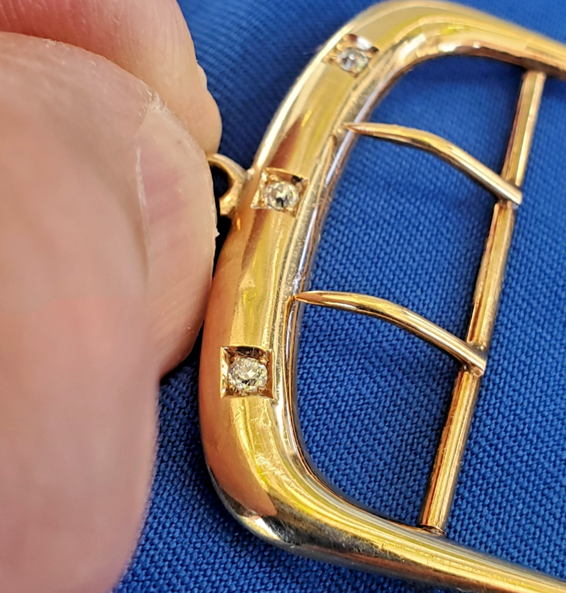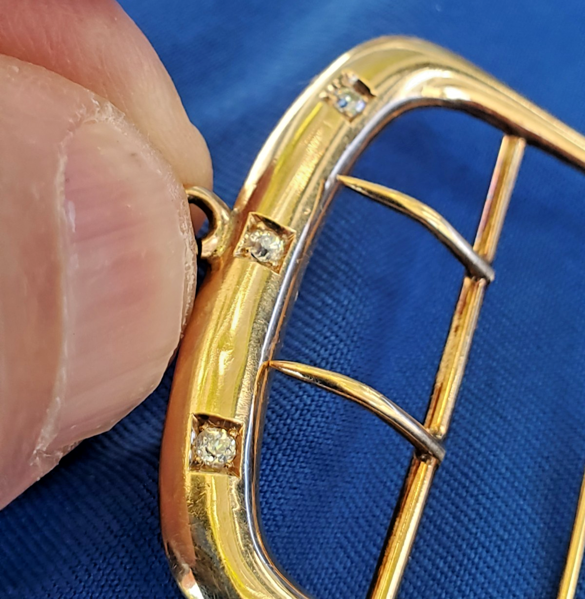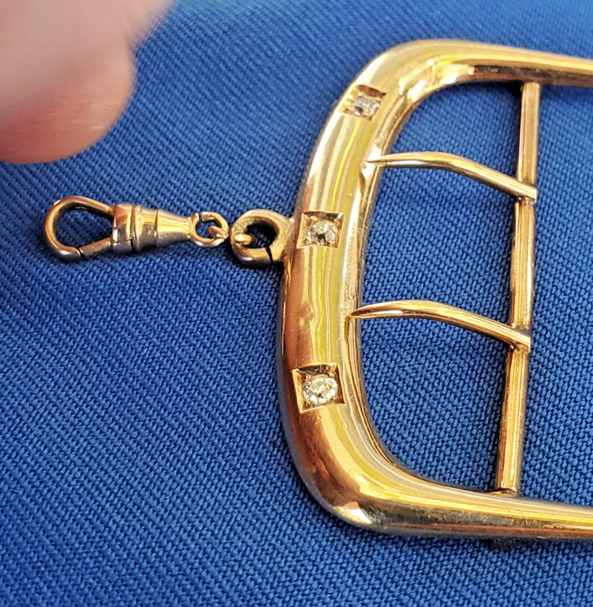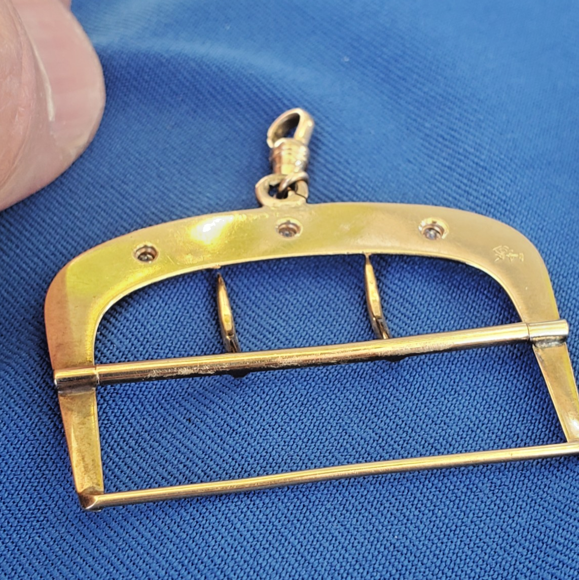 ORIGINAL VINTAGE DIAMOND 14K GOLD BUCKLE PENDANT.