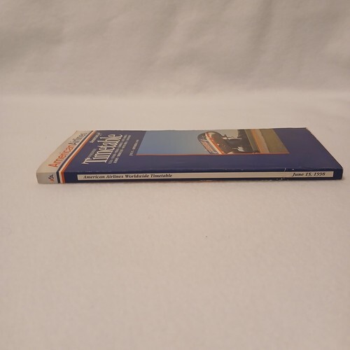 This listing is for a single American Airlines Timetable booklet. This timetable was effective on June 15, 1998. It features passenger flight schedules, seat maps, and cargo guides. The cover is clean with minor wear. The booklet is complete. There are 326 pages. There are no missing or torn pages. The pages are clean.
