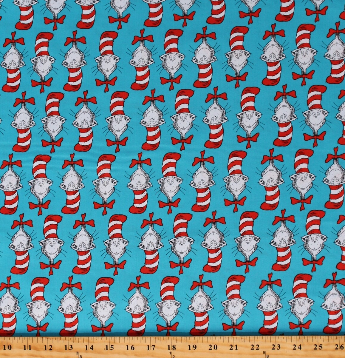 Cotton The Cat In The Hat Cartoon Dr. Seuss Fabric Print by the Yard D770.78