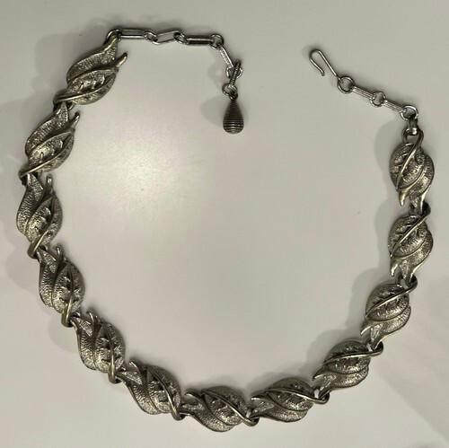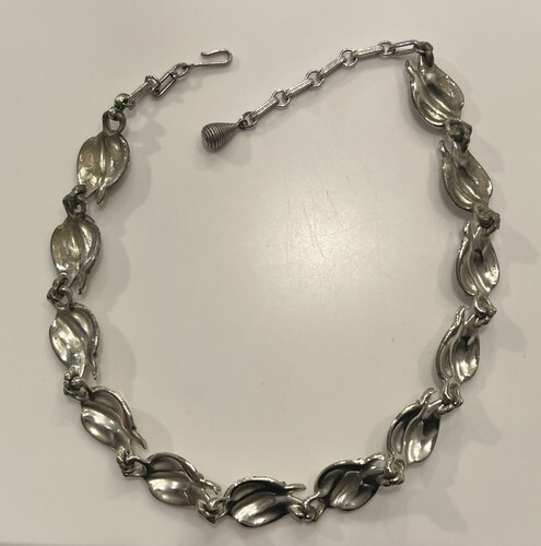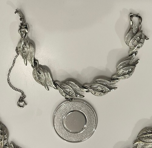 VTG Sarah Coventry Jewelry Leaves Leaf Shell Silver Tone Necklace Bracelet Set