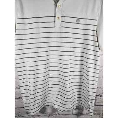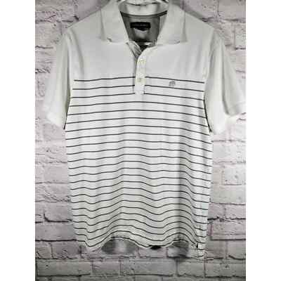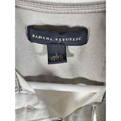 Banana Republic Men's Short Sleeve Polo Shirt White Gray Logo Cotton Blend Large