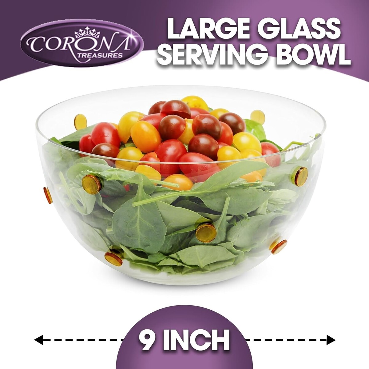 GAC Elegant Large Glass Serving Bowl with Designed 9 Inch
