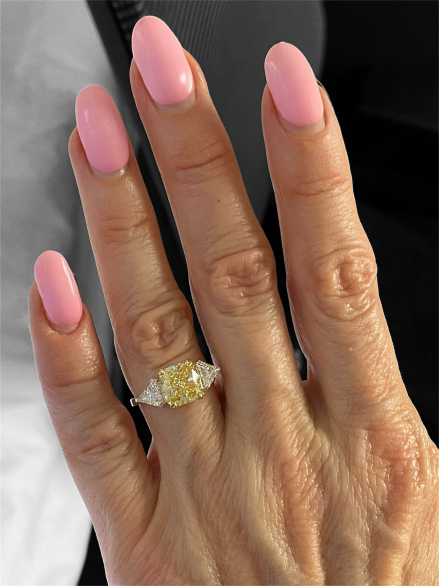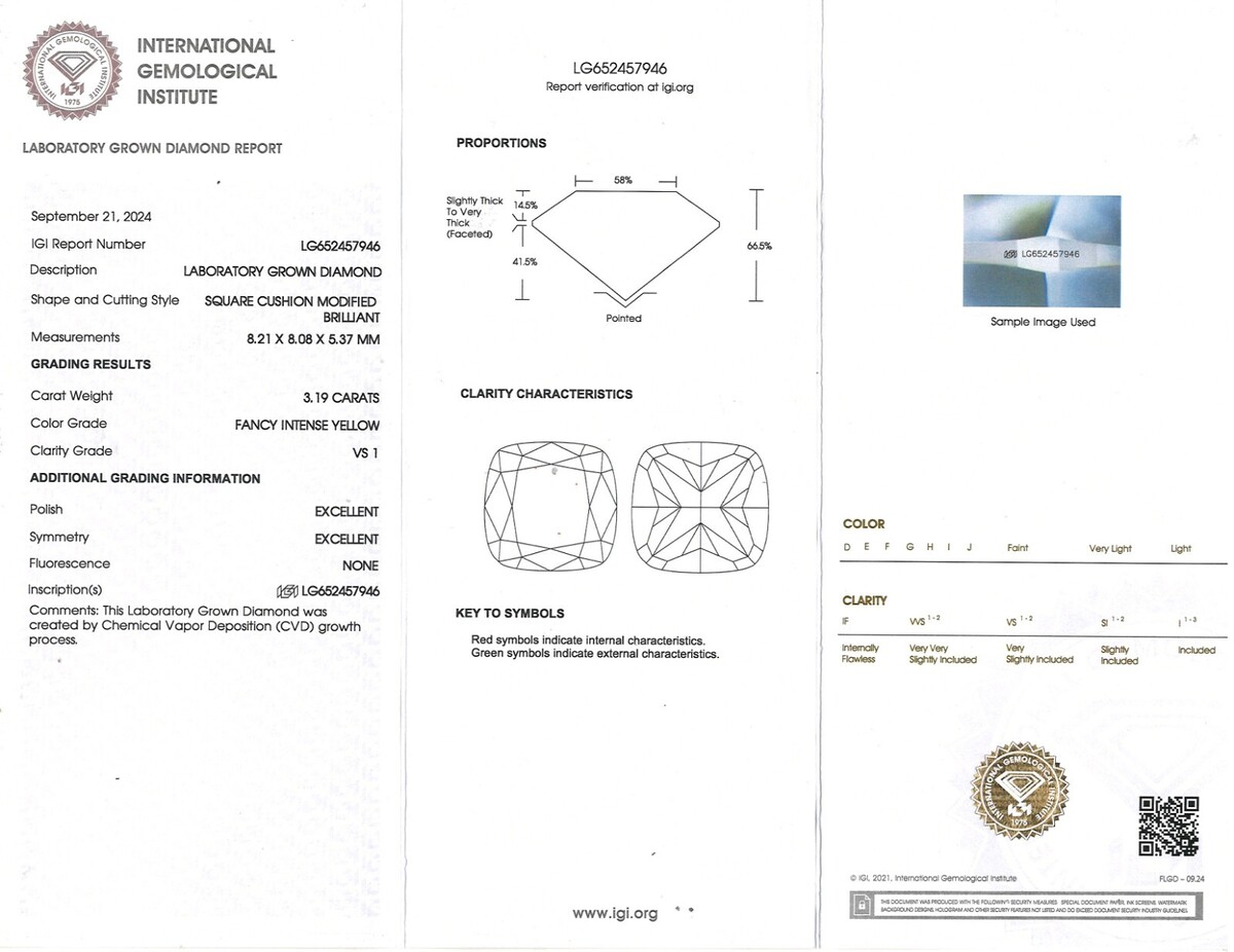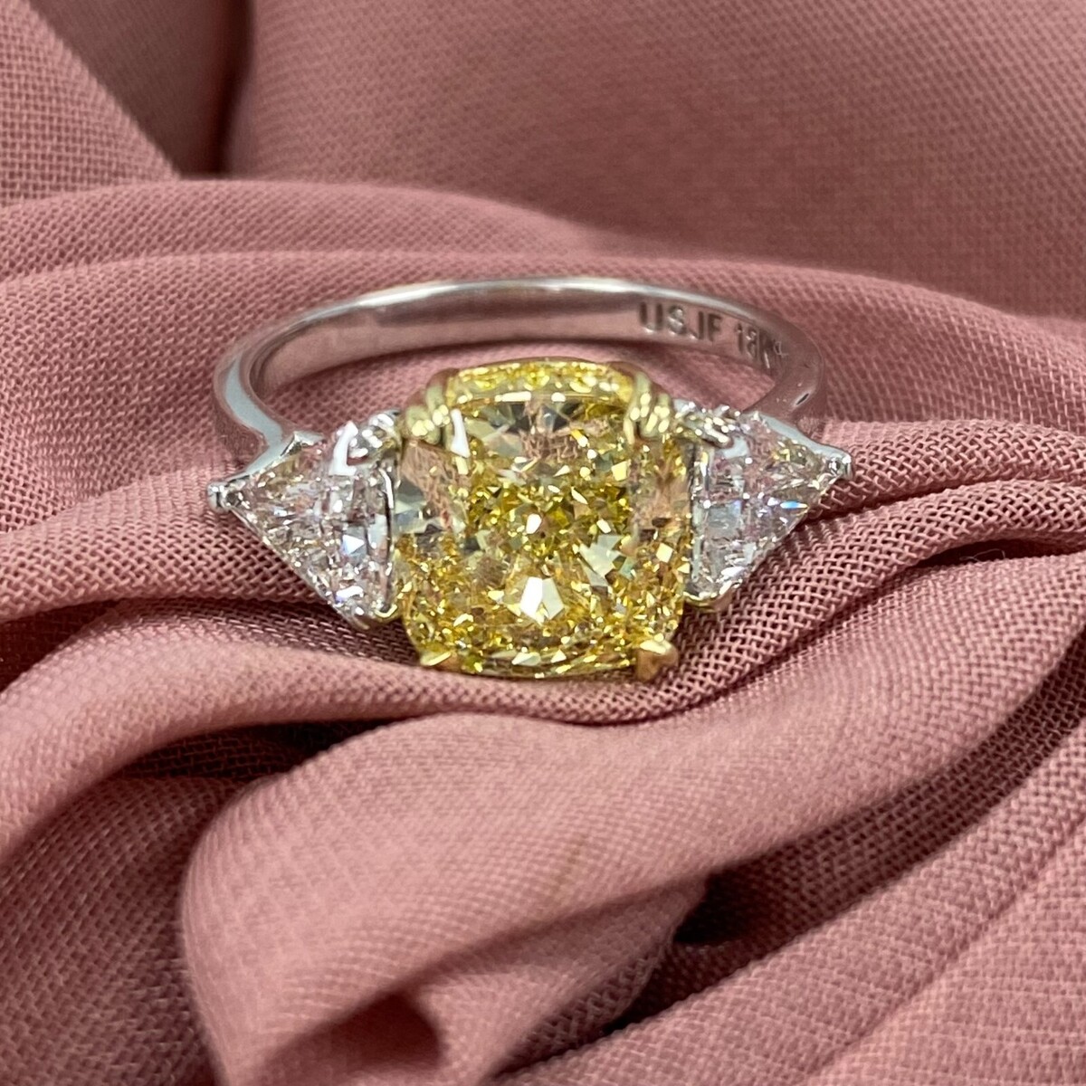 3 Stone 4.29Ctw Cushion Intense Yellow IGI and 43 similar items