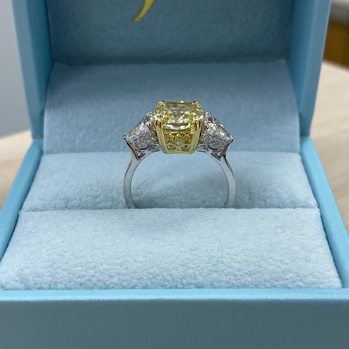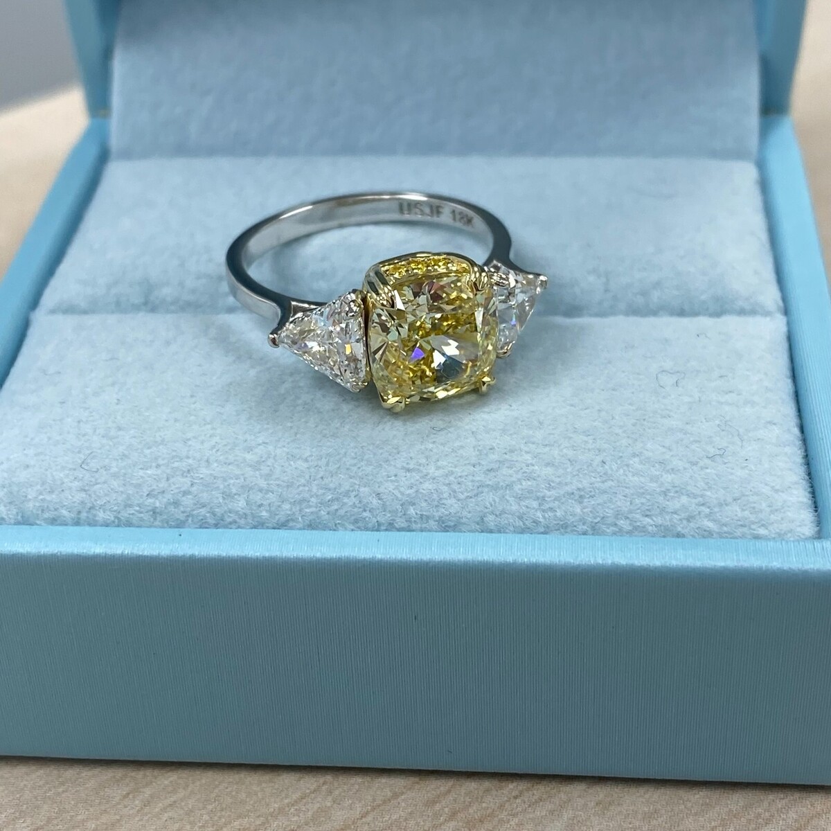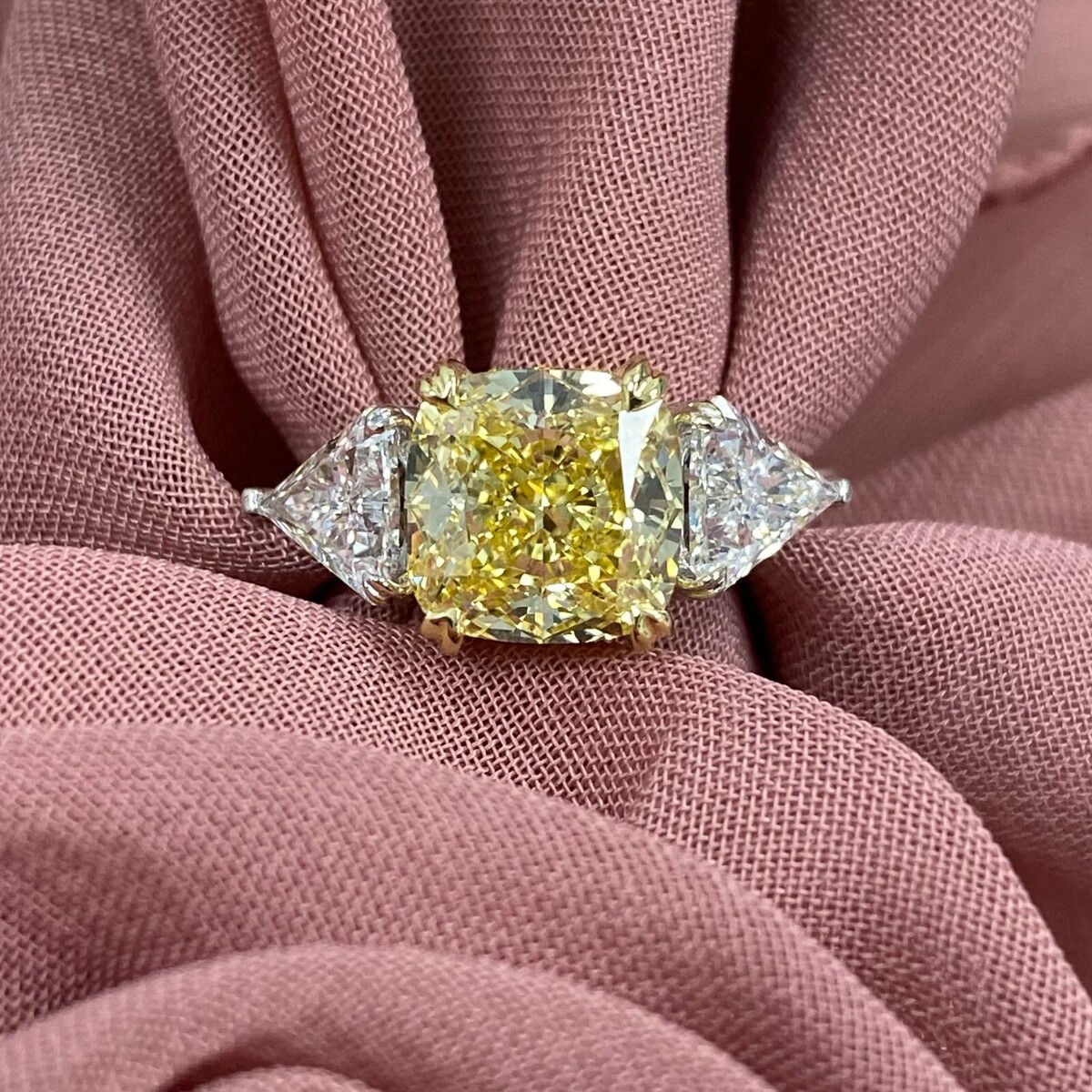 3 Stone 4.29Ctw Cushion Intense Yellow IGI and 43 similar items