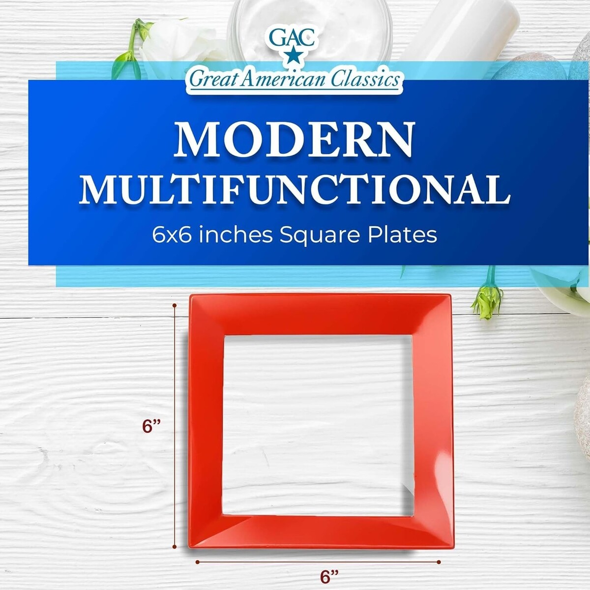 Add a bold and modern touch to your dining table with this square glass dinner plate set by GAC Great American Classics. Crafted from high quality tempered glass, these 6 inch plates feature a vibrant red finish that instantly elevates both everyday meals and special occasions. Their sleek square design blends contemporary appeal with functional elegance, making them a stylish addition to any table setting.