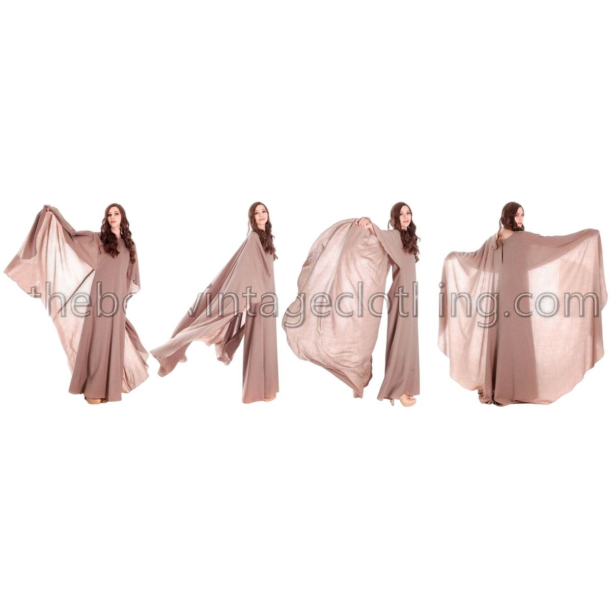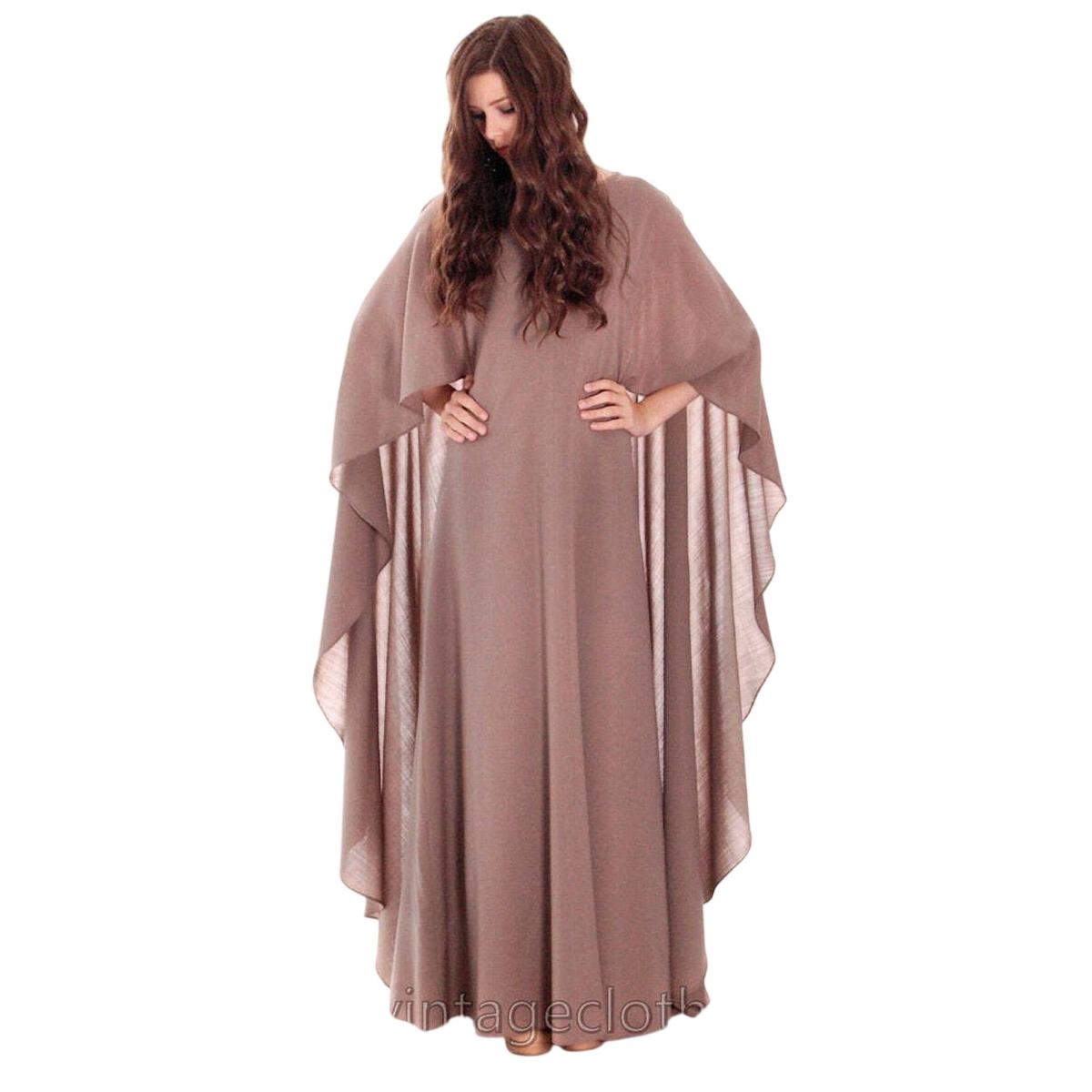 Vuokko VTG 70s Black Wool Voile Designer Gown w/ Full Circle Cape Dress Sz 38 S