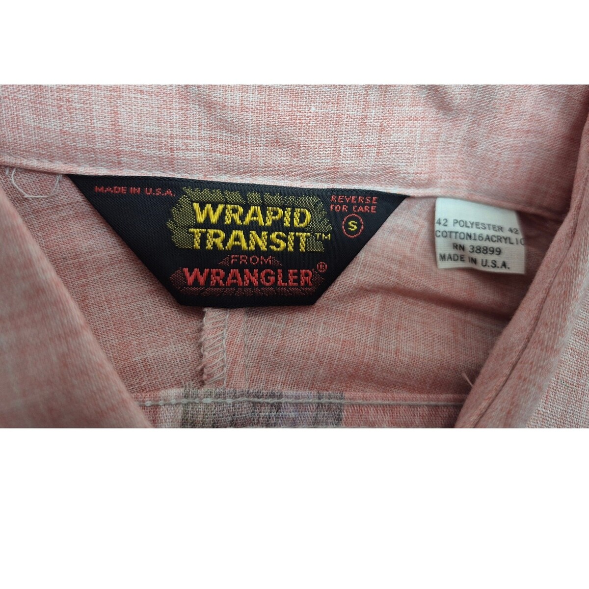 VTG 1980s NWT Wrangler Wrapid Transit Pink Plaid Button Down S USA Made