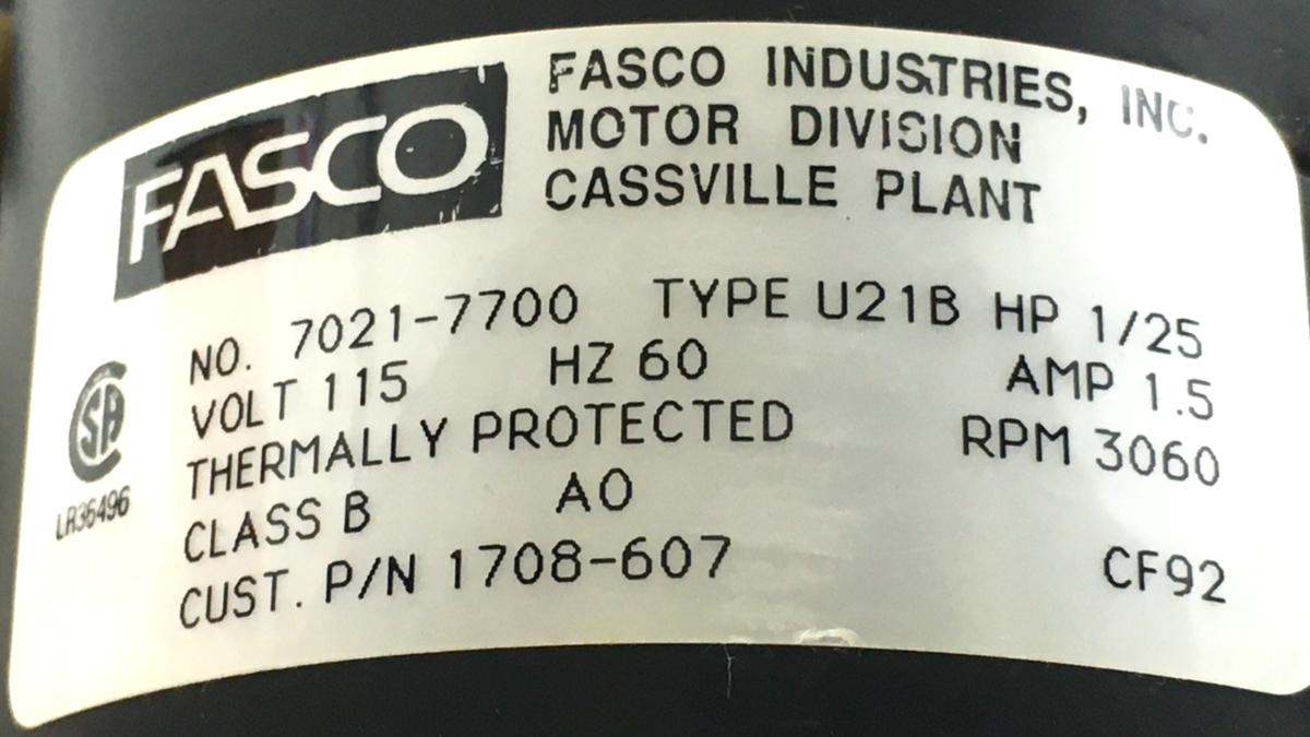 FASCO 7021-7700 1708-607 Draft Inducer Blower Motor Assembly used #MA77