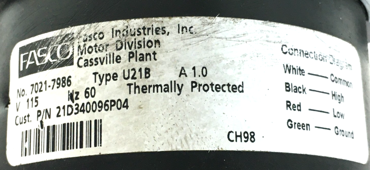 This is Fasco 7021-7986 Inducer Motor Assembly 21D340096P04 115V used motor.