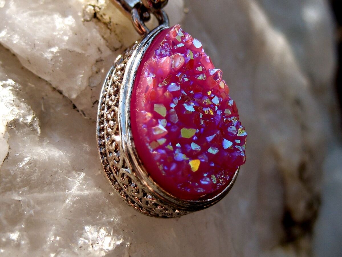 The pendant she is bound to is of unusual beauty. A pink stone set in detailed silver. It comes with a chain. You do not have to wear it in order to experience all that this gorgeous Fire Nymph has to offer!!