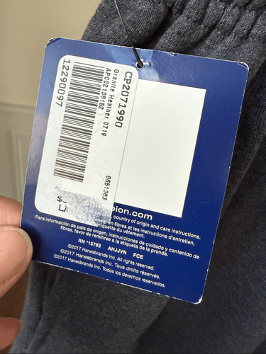 New tags 100% cotton champion, Notre Dame graphite Heather sweatpants with large Notre Dame ND at one hip. On seam hip pockets. Please note these are traditional sweatpants with the elastic ankle. They are not straight leg or jogger style. Tag size large with a 33 inch inseam.