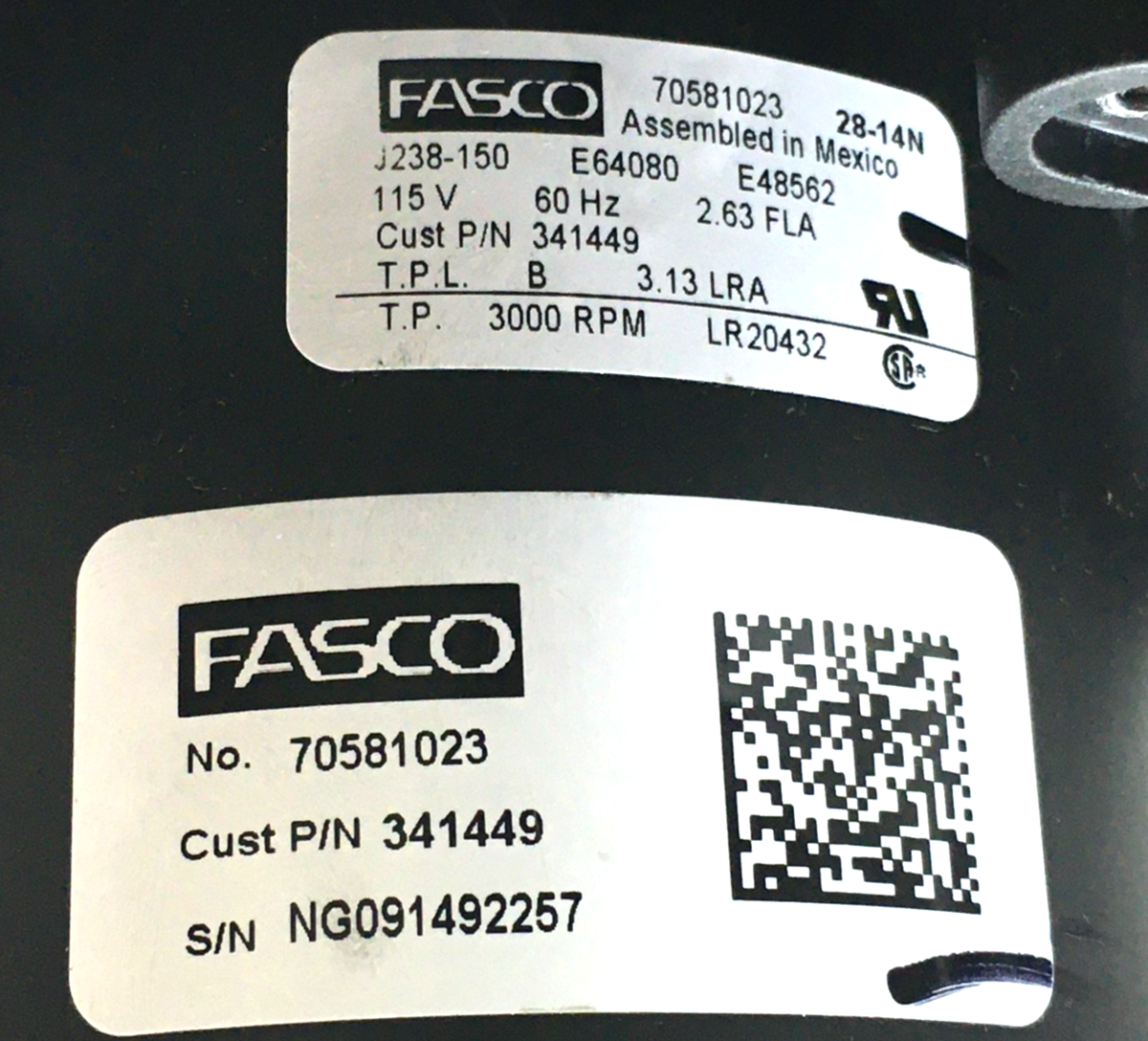 This is Fasco 70581023 York Furnace Draft Inducer 341449 J238-150 115V 3000 RPM used part.
