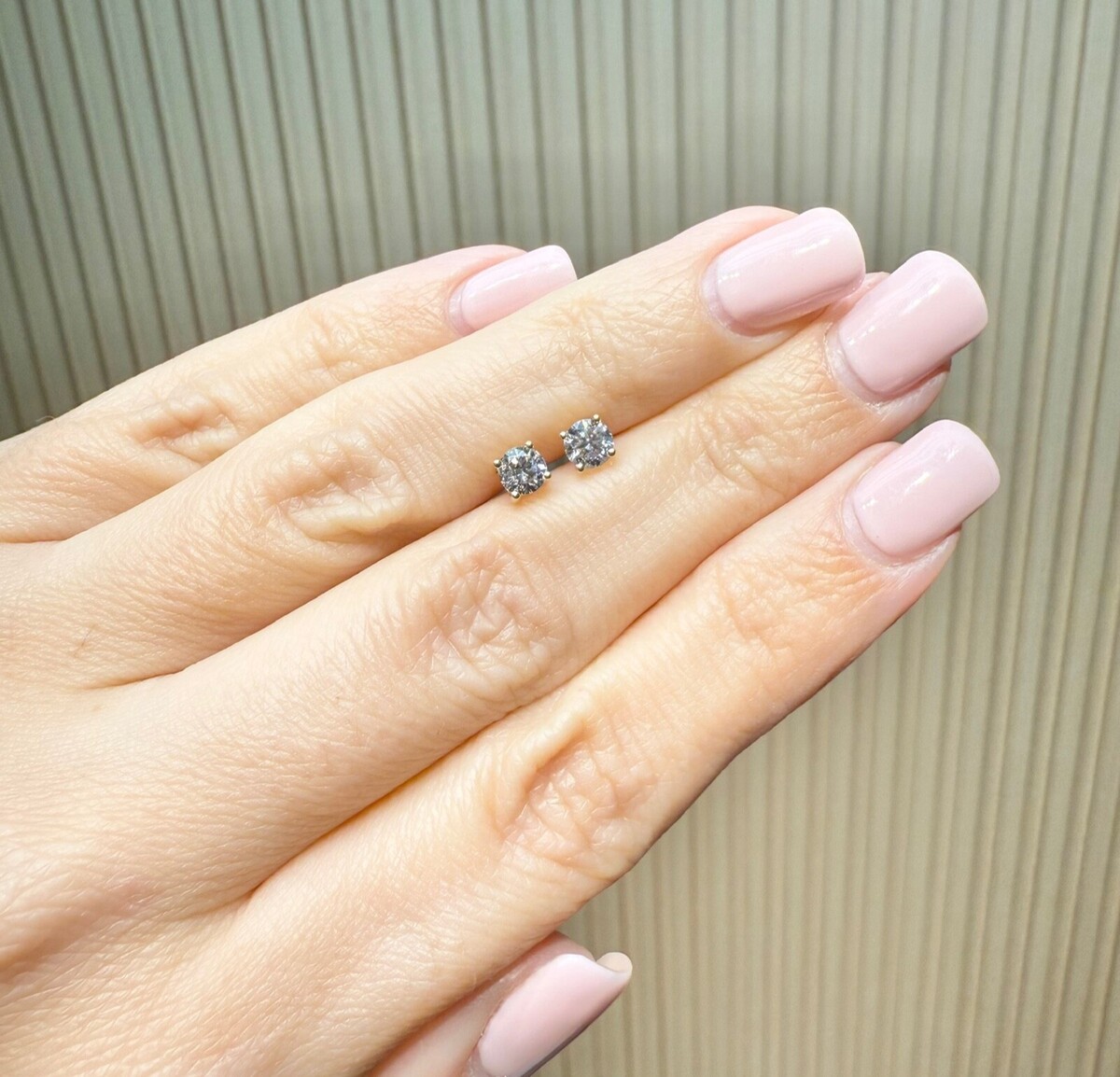 14K Yellow Gold Round Lab Grown Diamond Screw Back Stud Earrings 0.50ctw E/VS1