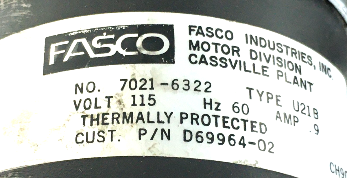 This is FASCO 7021-6322 Draft Inducer Blower Motor Assembly D69964-02 115V used part.