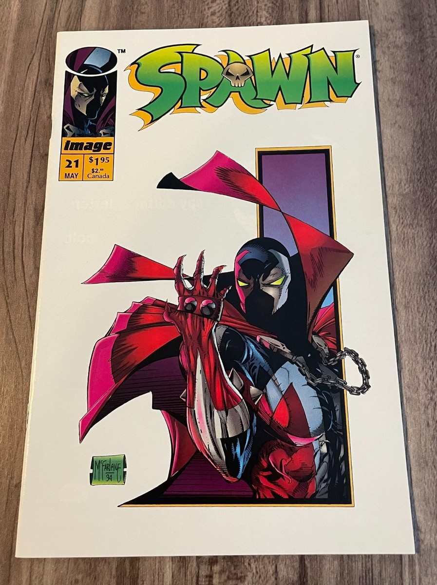This is a Vintage SPAWN #21Image Comics COMIC BOOK From 1994. Boarded and Bagged from original purchase. It is in great condition. No Creases or Defects. See pictures. Pictures are of actual Item being sold so you can see the condition. I don't use stock pictures. Good to help finish your Spawn Run. ELAG