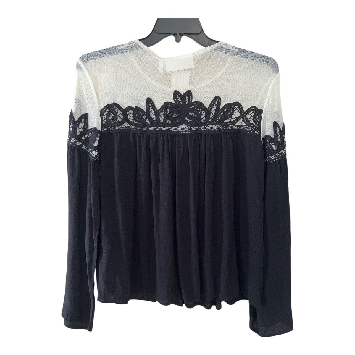 LaBellum Hillary Scott Black Lace Blouse Small Sheer Mesh Yoke Top NWT