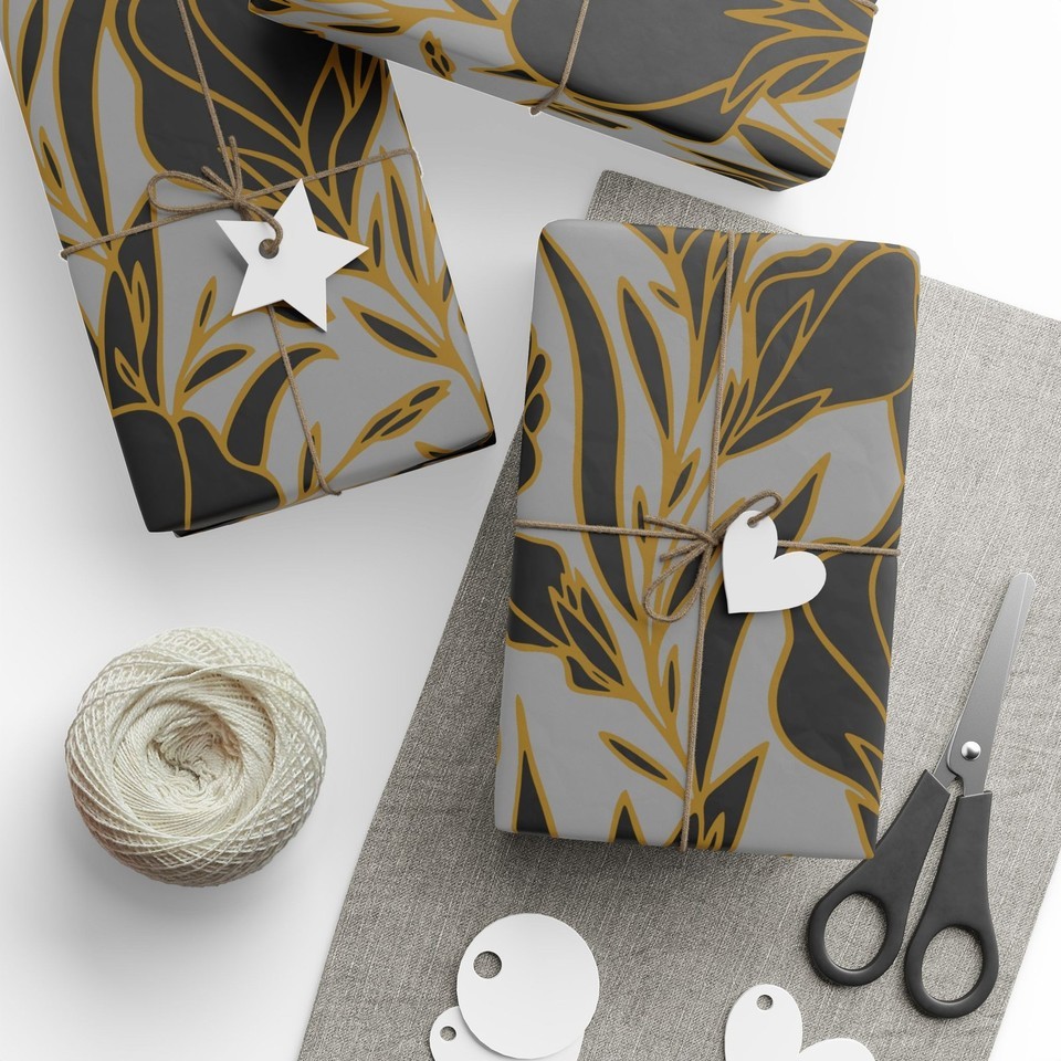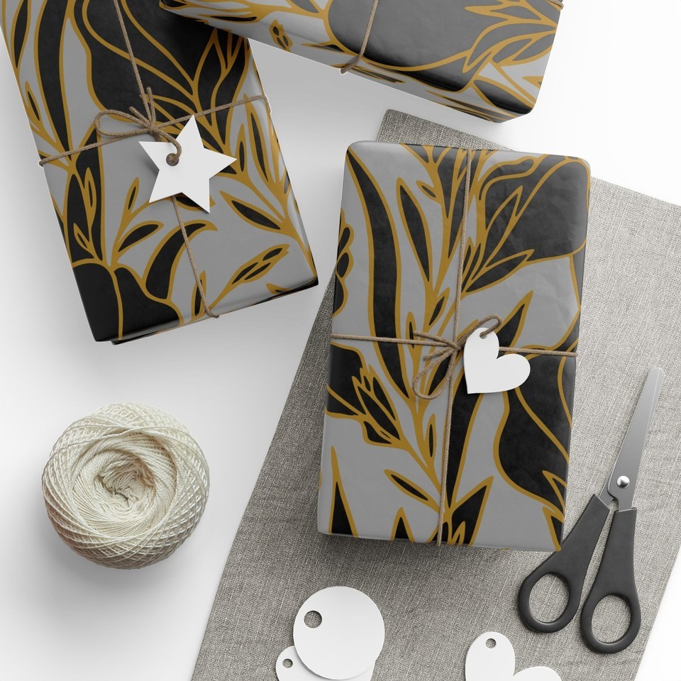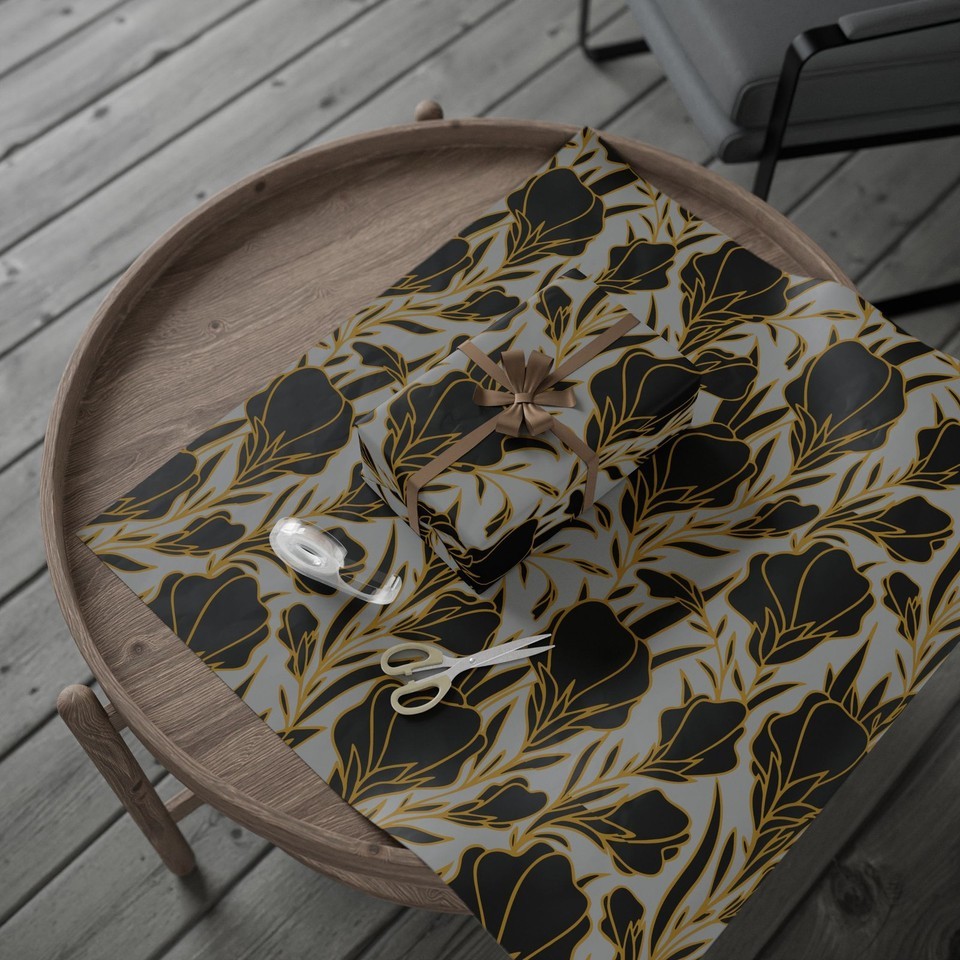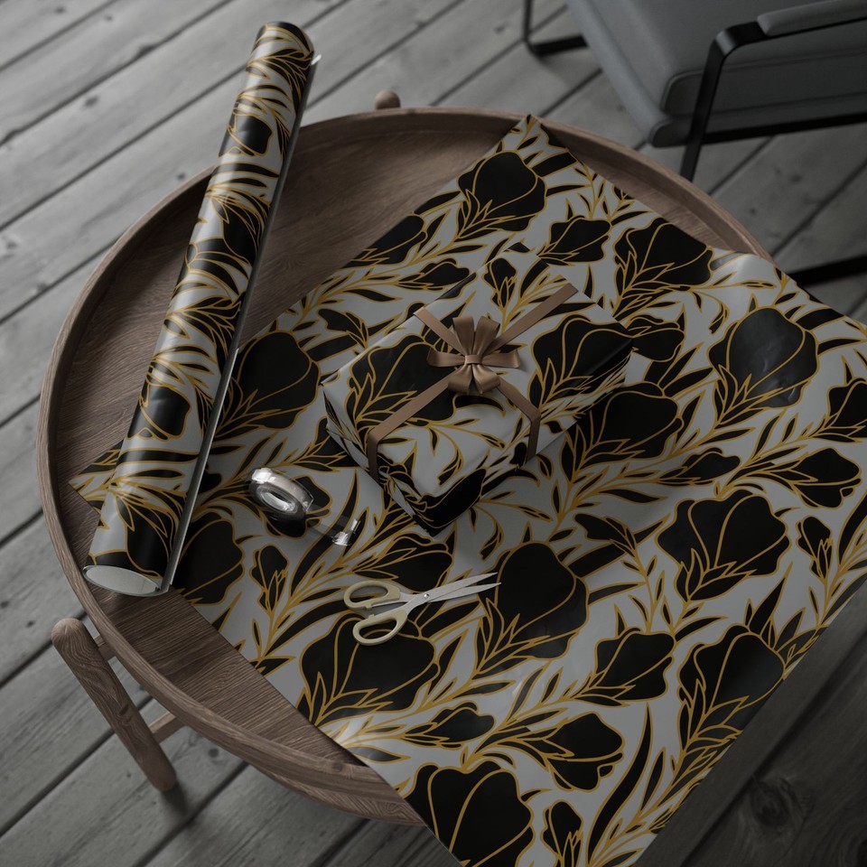 Elegant Golden Black Florals Decorative Eco-Friendly Gift Wrapping Paper