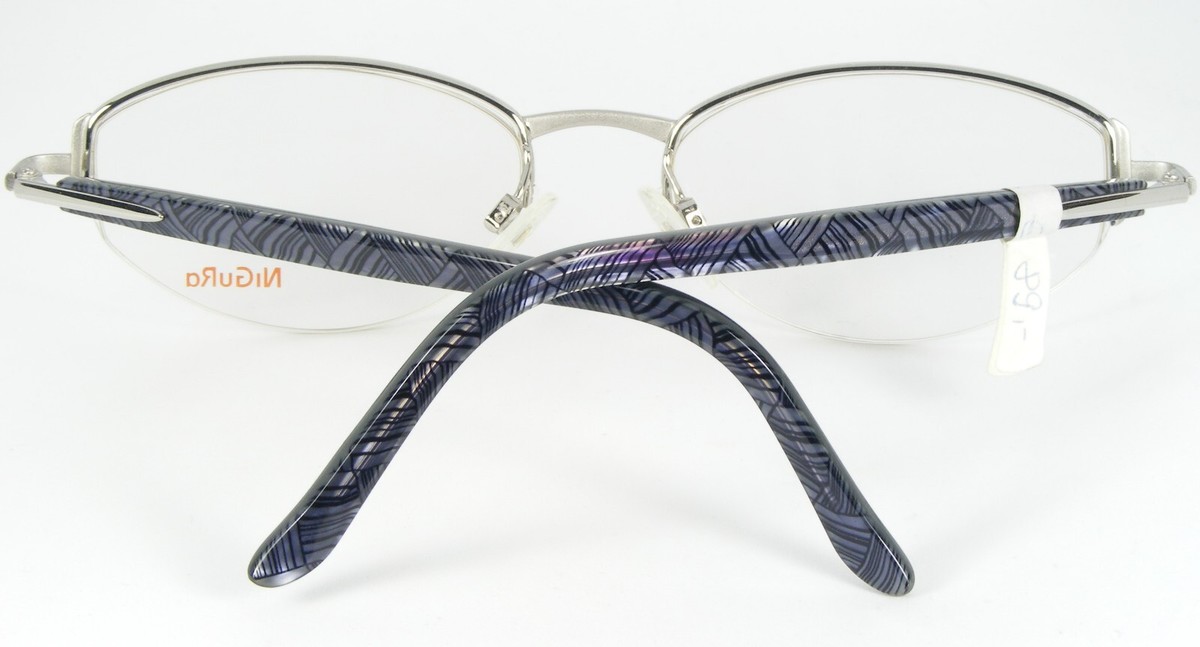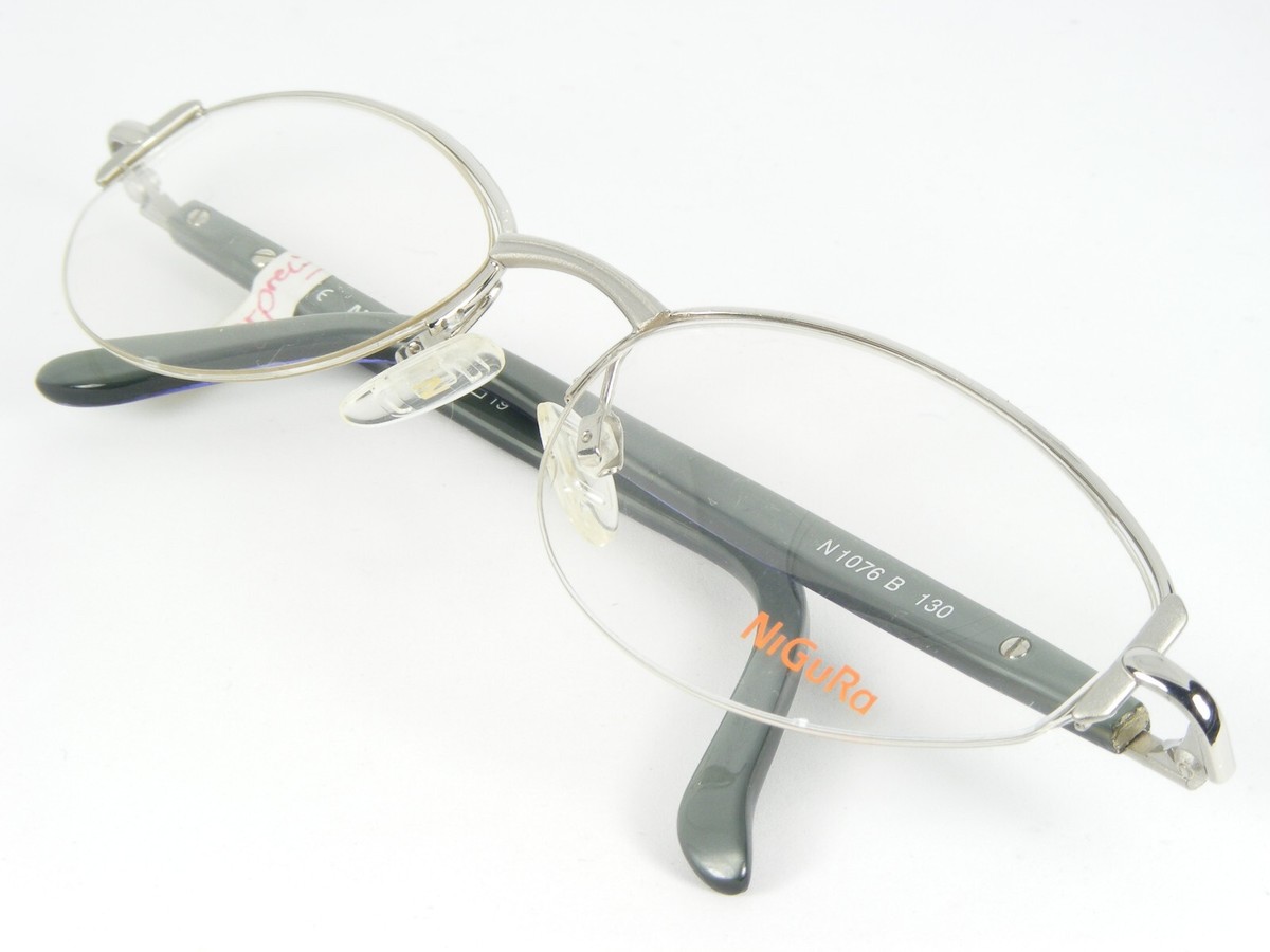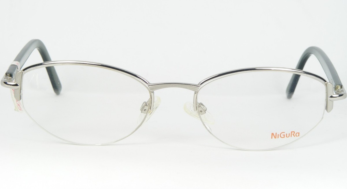 NiGuRa N 1076 B OCCHIALI DA VISTA ARGENTO OCCHIALI CON MONTATURA IN METALLO MEZZA CERCHIO N1076 52-19-130mm. (A836)