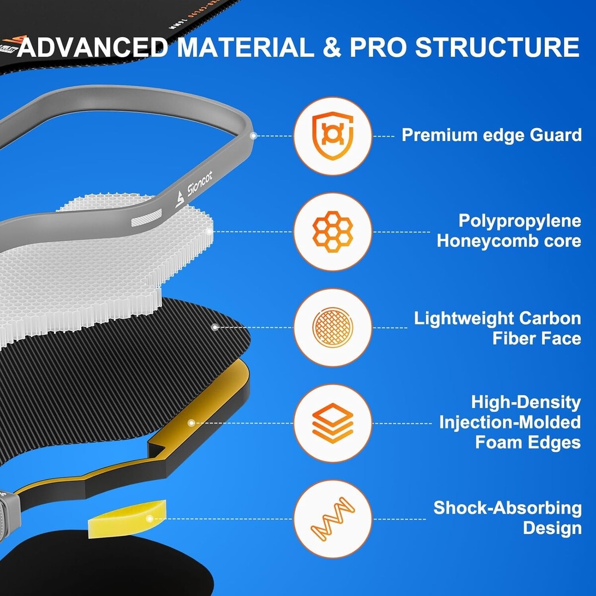 4th-Gen Upgraded Core: This 16mm upgraded core?built with a honeycomb structure and high-density foam wall?dampens harsh vibrations for steady, precise ball control on every strike, its flexible cellular design compresses on impact for a responsive feel, while rugged polymer construction resists wear and tear to extend the paddle?s service life.