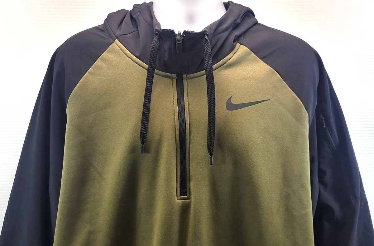 Nike Men's Dri-Fit Green Black Quarter Zip Hooded Pullover Hoodie Sweatshirt