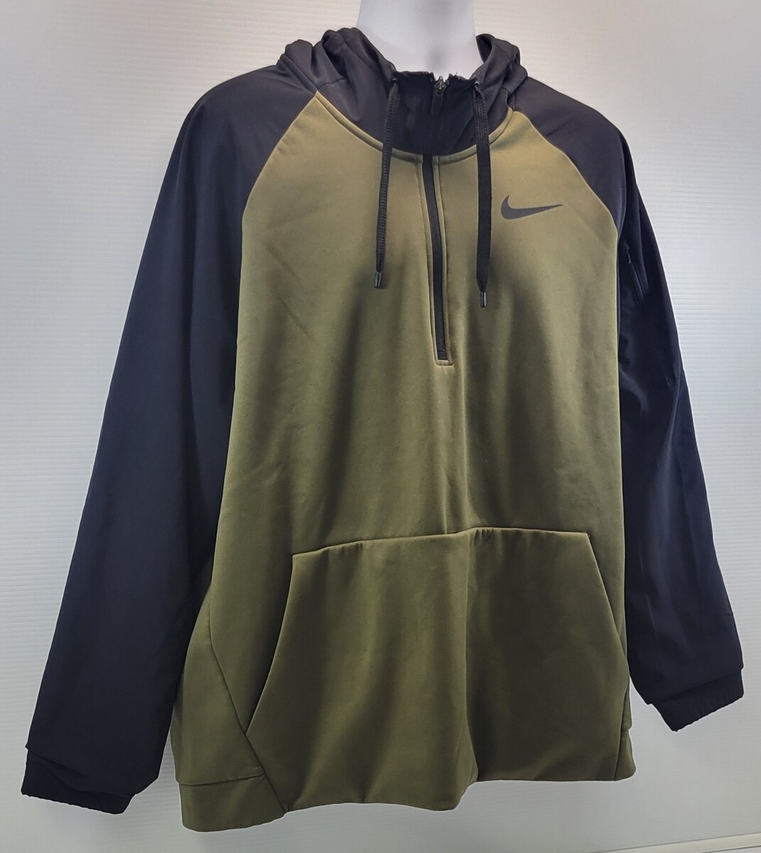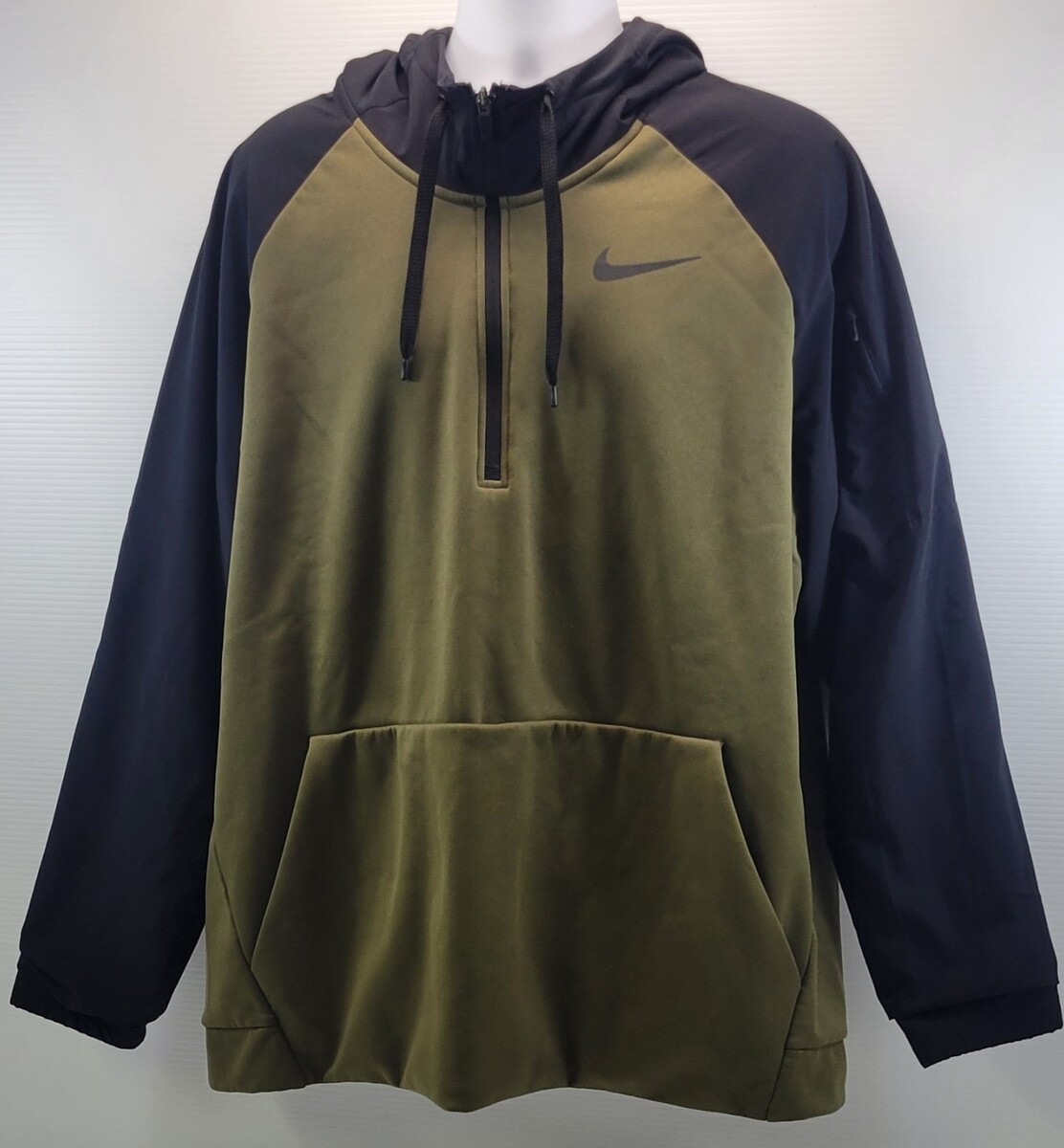 QQ) Nike Men's Dri-Fit Green Black Quarter Zip Hooded Pullover Hoodie Sweatshirt