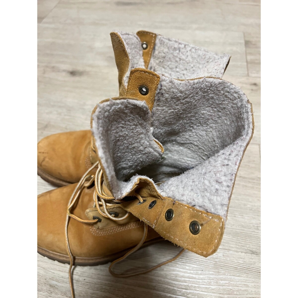 Timberland Leather 8329R Fold Down Teddy Fleece Lined Waterproof Boots Women 8