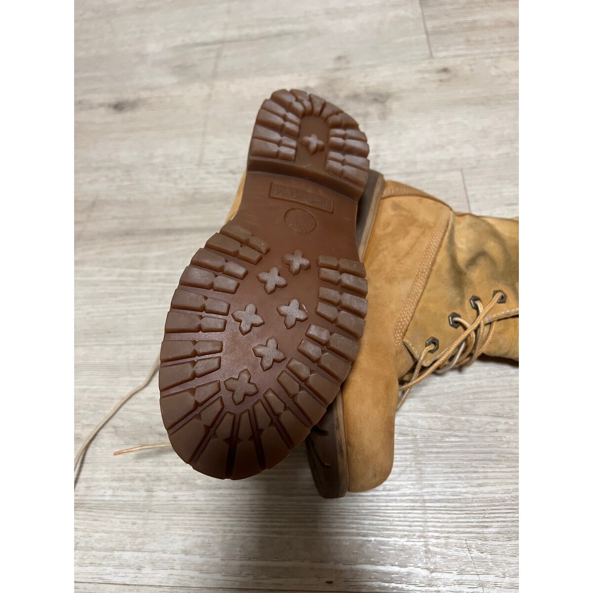Timberland waterproof boots feature a classic wheat nubuck leather upper with a cozy faux shearling fleece lining for added warmth. Designed with a versatile fold-down shaft, these lace-up boots offer two distinct looks while maintaining their rugged durability. The heavy-duty lugged rubber outsoles provide excellent traction, and the signature embossed tree logo confirms their authentic heritage style. Perfect for outdoor adventures or casual urban wear in colder weather.