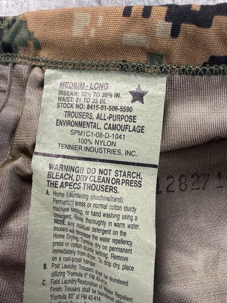 Genuine Usmc Gen II Apecs Gore Tex Digital Marpat Woodland Cold/Wet Weather Pants.