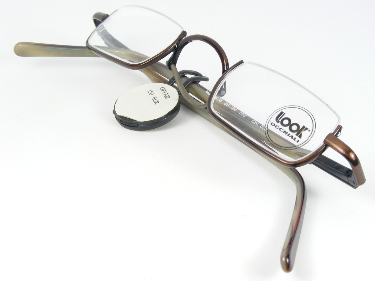 Vintage LOOK occhiali 1638 023 BROWN EYEGLASSES GLASSES FRAME 39-24-135mm. (D848) Light yet stable, precise yet dynamic. Harmonious in shapes, efficient in function. LOOK frames are incredibly light. All are either stainless steel or pure titanium?which is the lightest material there is. Technology at the service of style and comfort: Exclusive materials made with advanced technology make LOOK frames light, comfortable, resistant to corrosion, heat, UV and hypoallergenic. Look also did a study on eyewear fit to make the frames have improved ergonomics and fit more head shapes. Look frames have a patented hinge system. The self-lubricating hinge will never have to be changed like a typical frame screw that holds the body together. Returns are always FREE for any reason. If you don't like it