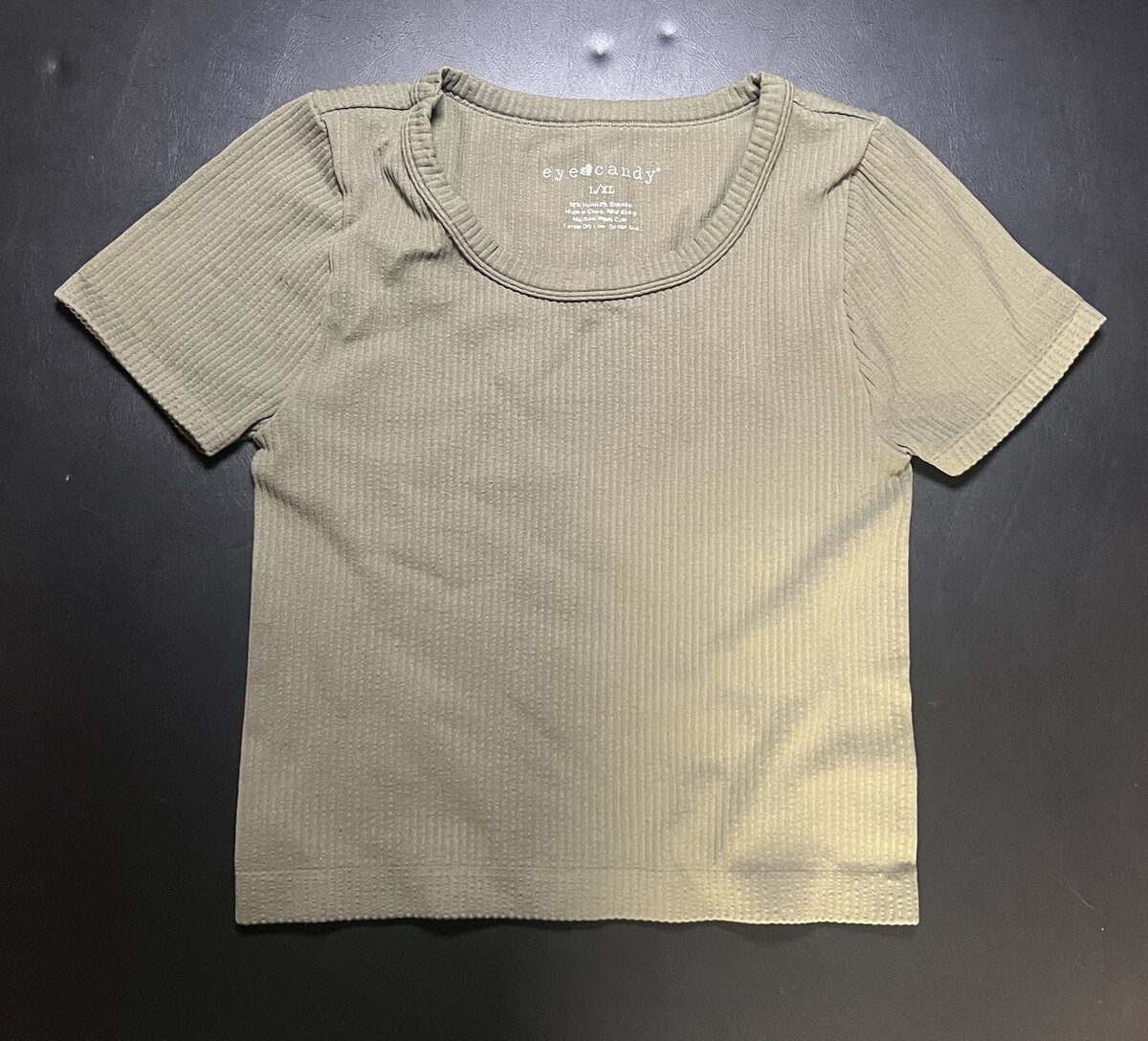 Eye Candy Short Sleeve Ribbed Tee Girls L/XL Green
