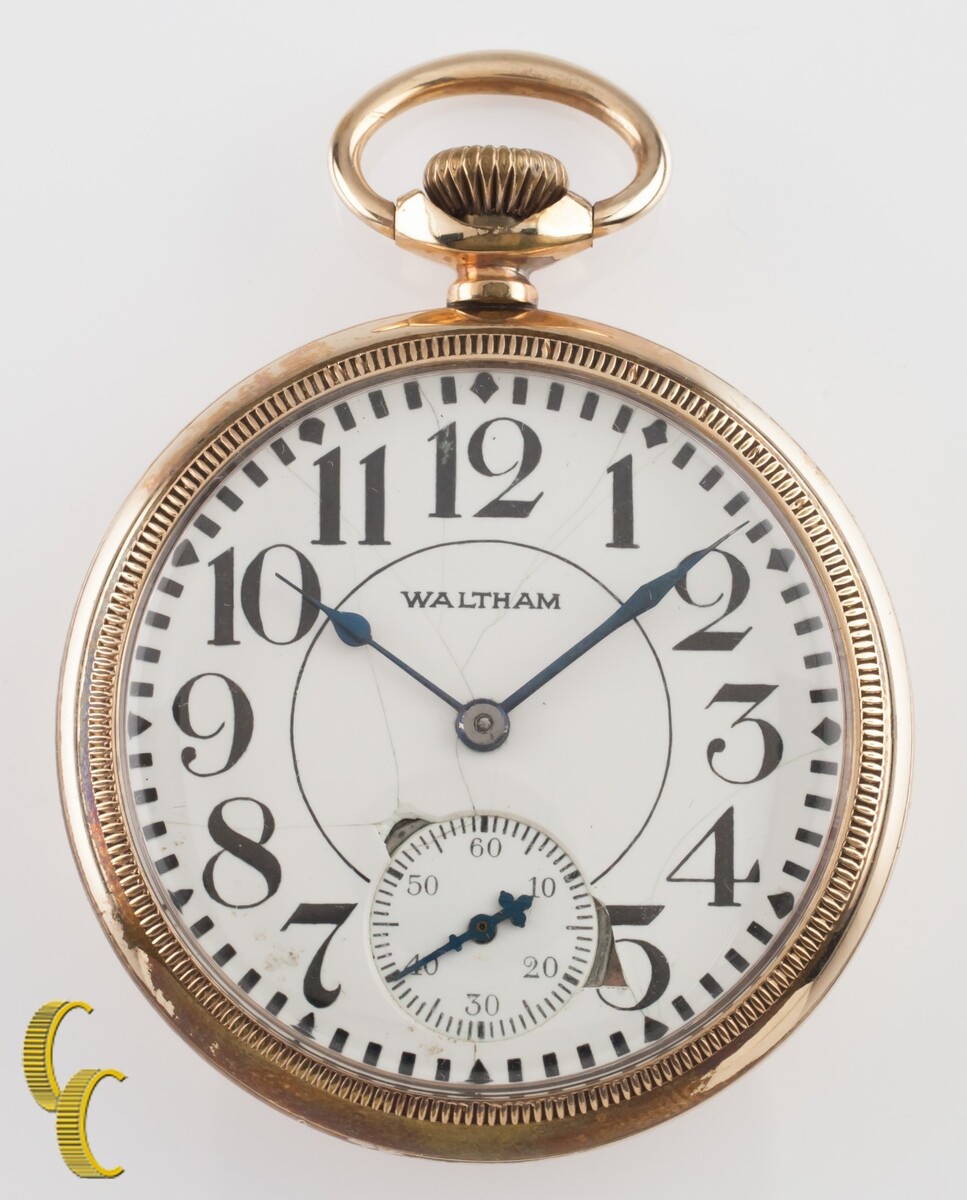 Yellow Gold Filled Antique Waltham Open Face Pocket Watch 16S 15J