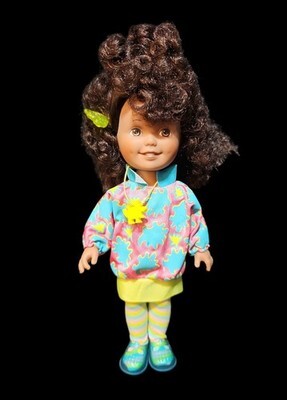 Vintage Playskool Dolly Surprise doll, character Lolly, from 1987. Lolly features her signature curly brown hair and bright, colorful styling typical of the Dolly Surprise line.