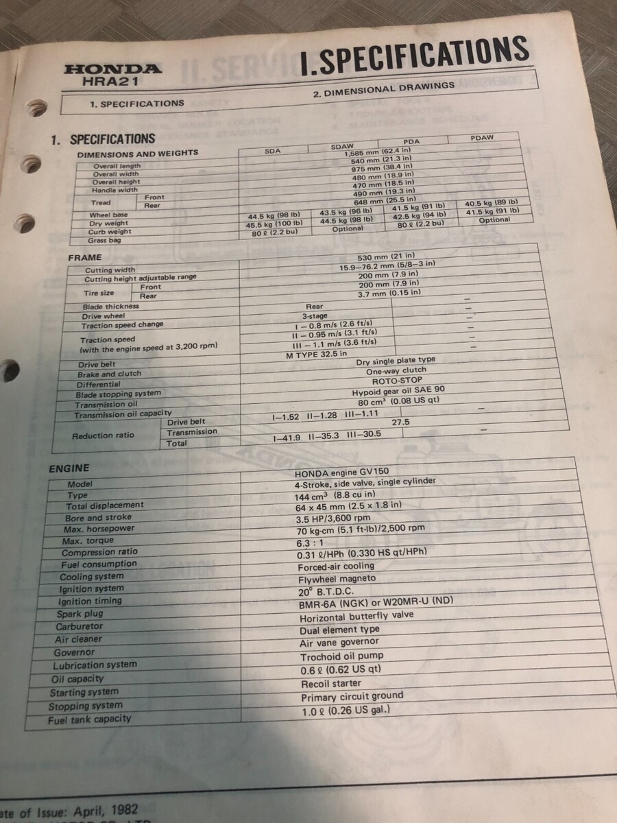 1982 Honda Lawn Mower HRA-21 Service Shop Repair Manual