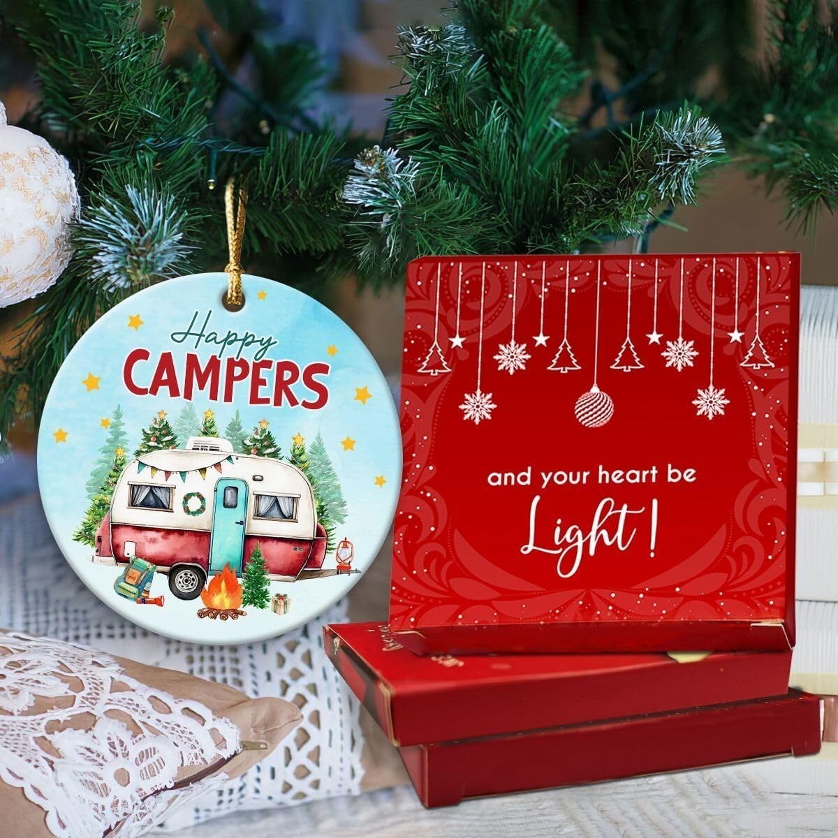 Set of 4 Happy Campers Ornaments Ceramic and 50 similar items