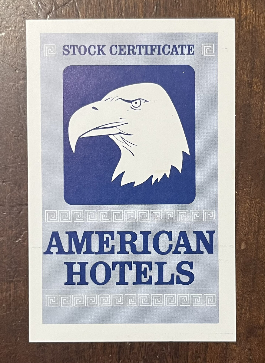 1962-95 ACQUIRE Game Parts Original 1976 American Hotels Stock Certificates