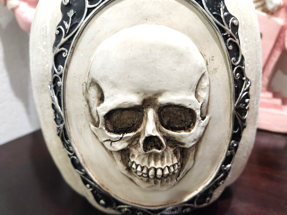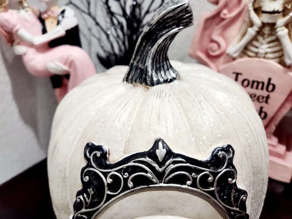 Halloween 3D Pumpkin Skull White Glitter Resin Figurine Statue Prop Decor 10.5"