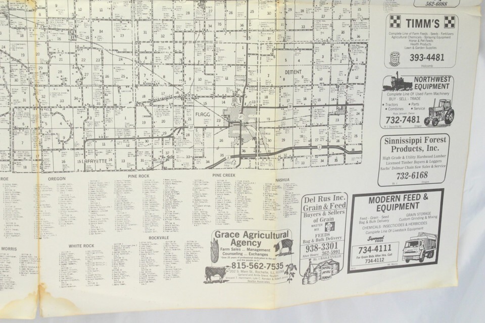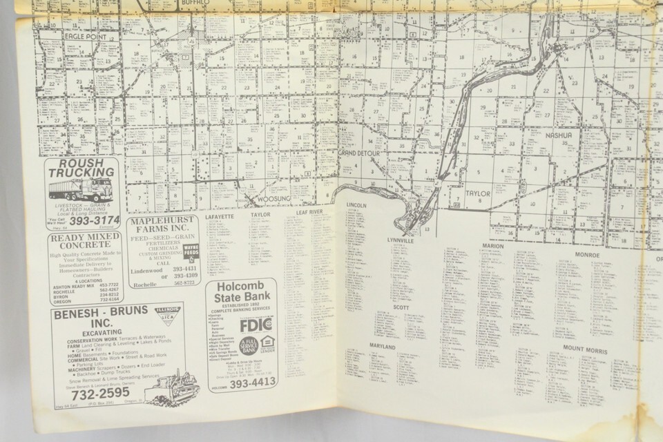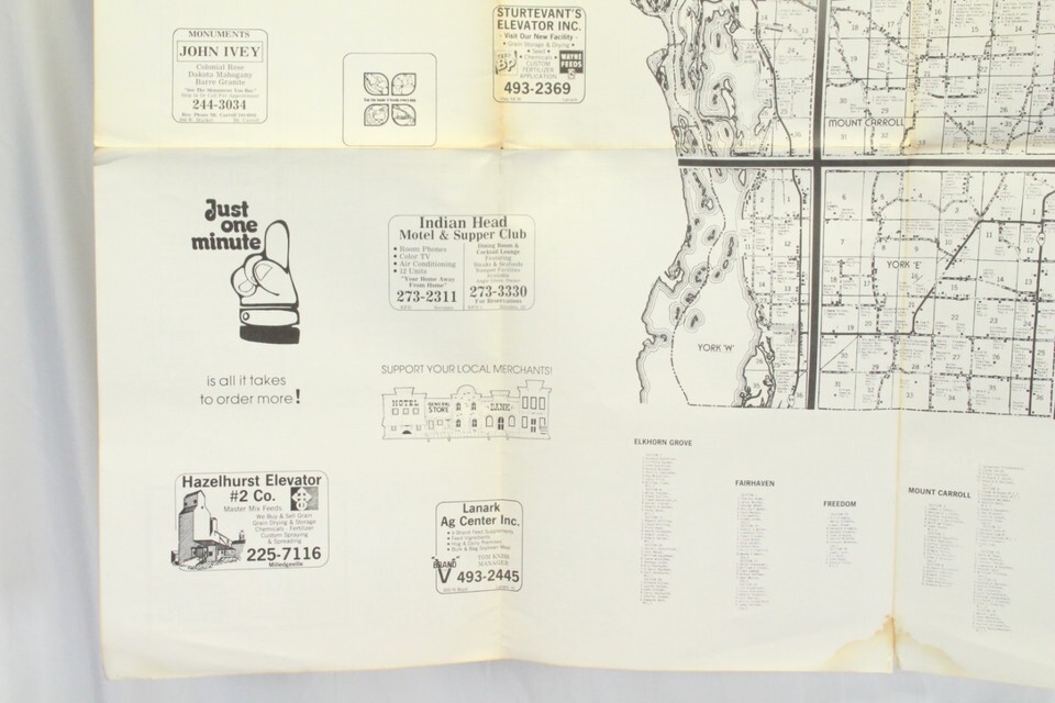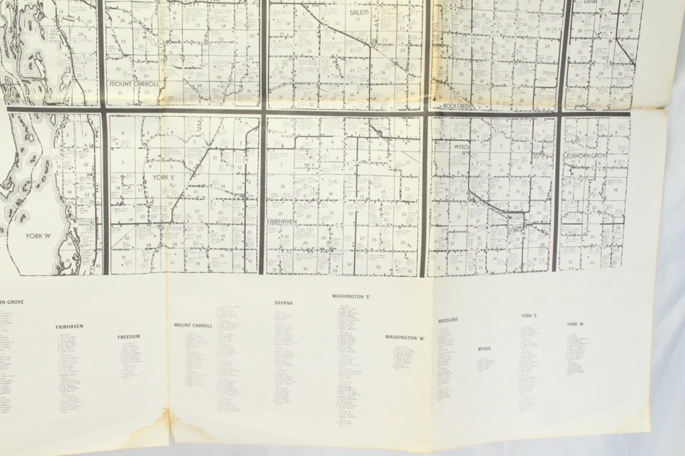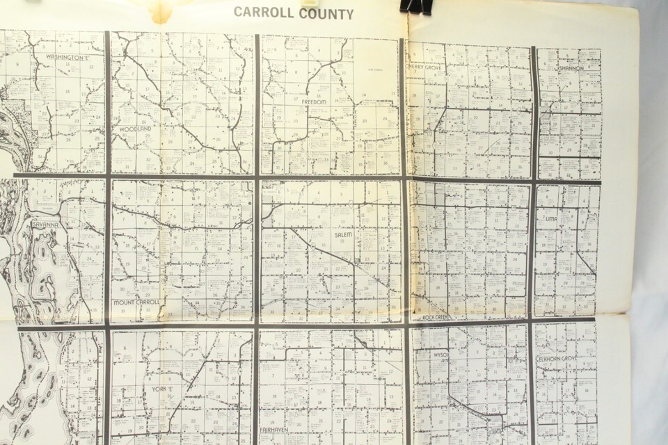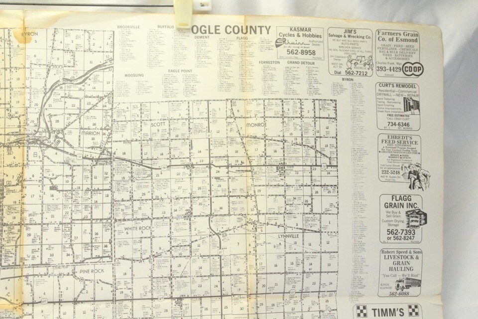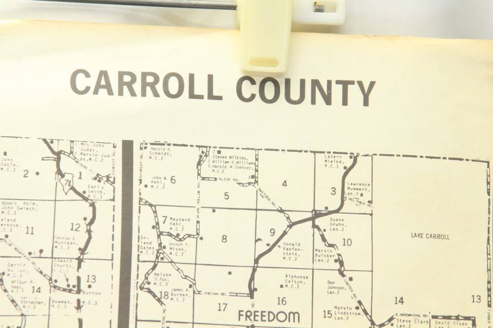 Carroll & Ogle County Illinois Map 1950s - 1960s Farmer Names Bussines 38" x 29"