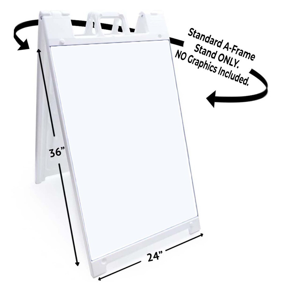 Tampa Printing offers 2 unique versions of this white heavy-duty A-Frame Sign. The Standard version includes the plastic A-Frame stand ONLY. NO
