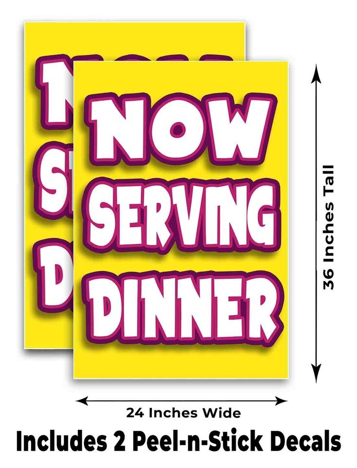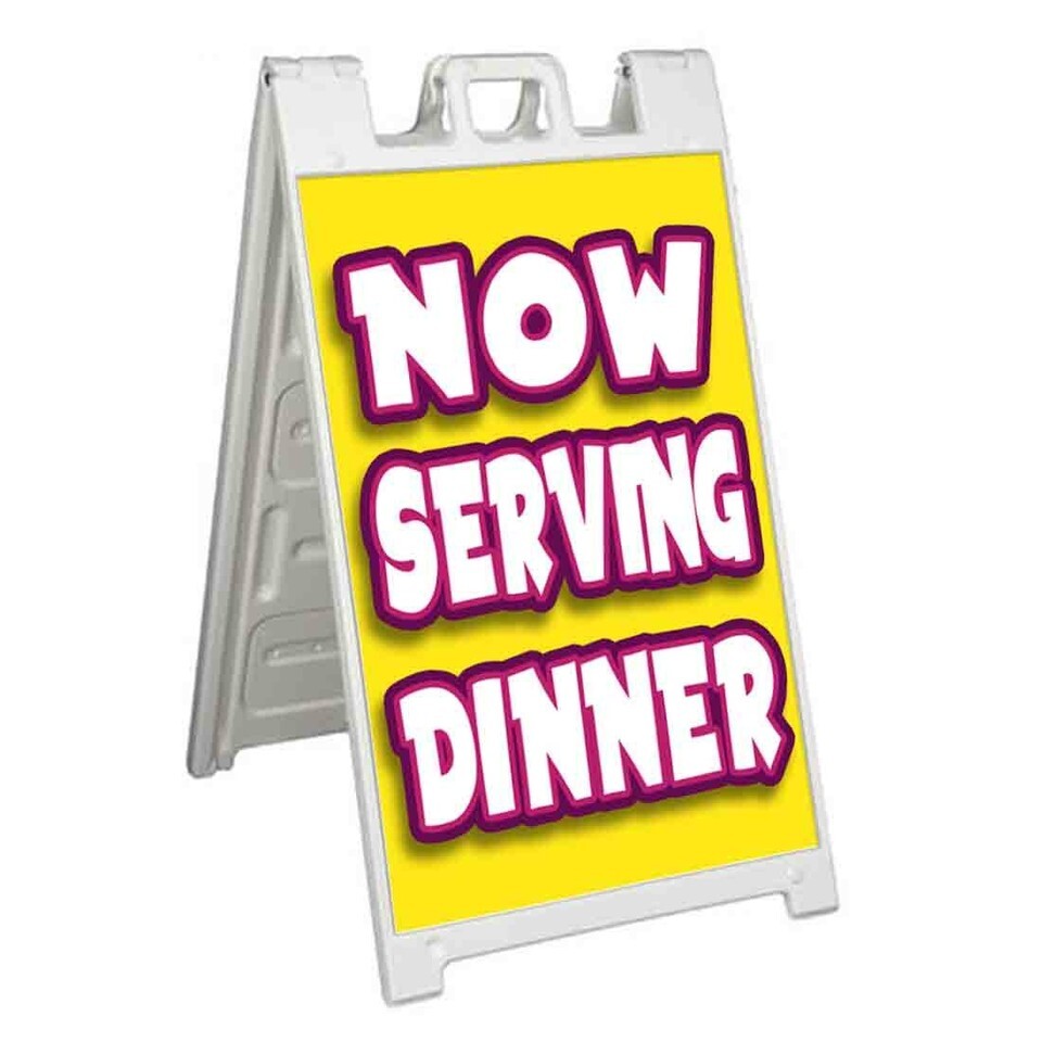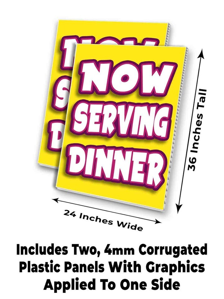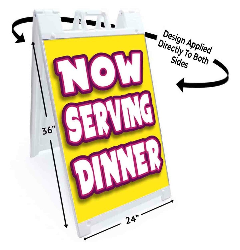 NOW SERVING DINNER Signicade 24x36 Aframe Sidewalk Sign Banner Decal FOOD