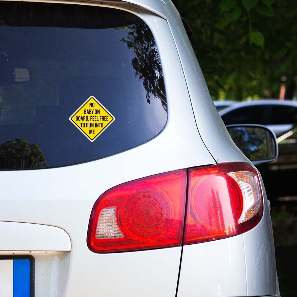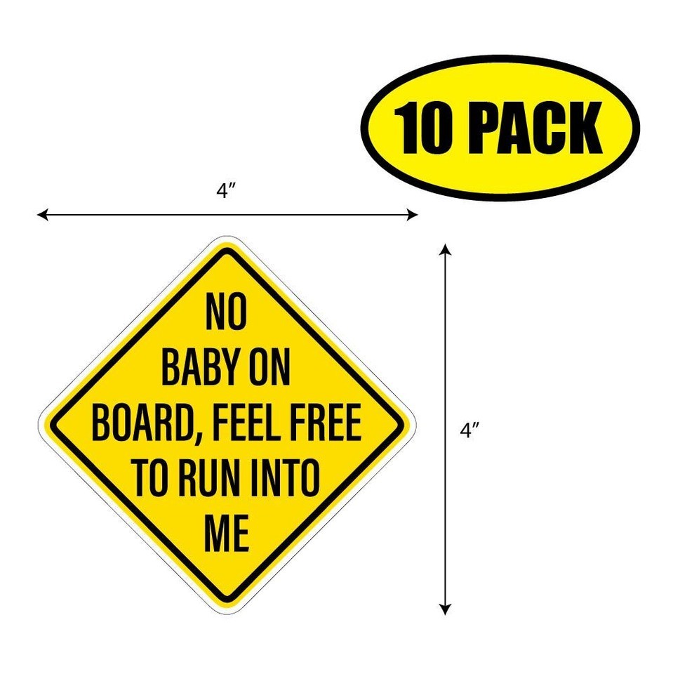 10 PACK 4"x2.75" NO BABY ON BOARD FEEL FREE TO RUN INTO ME Sticker Decal VG0231
