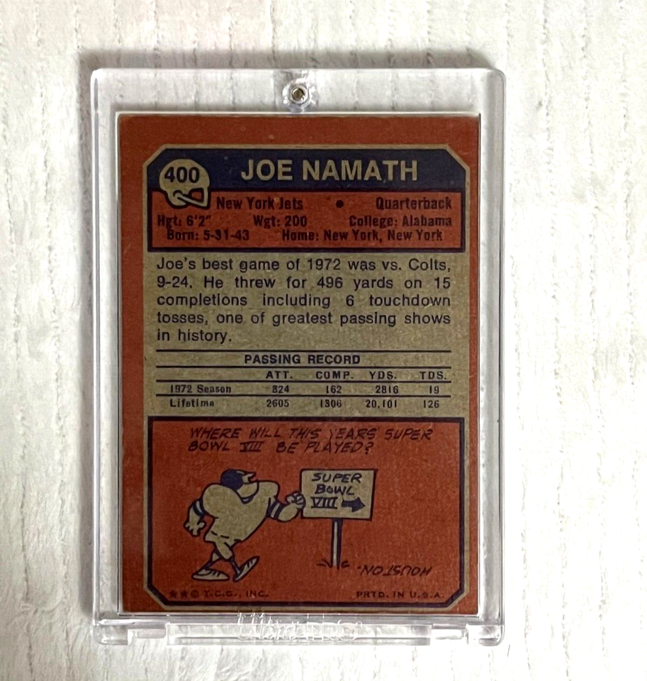 1973 Topps Joe Namath New York Jets #400 and 50 similar items