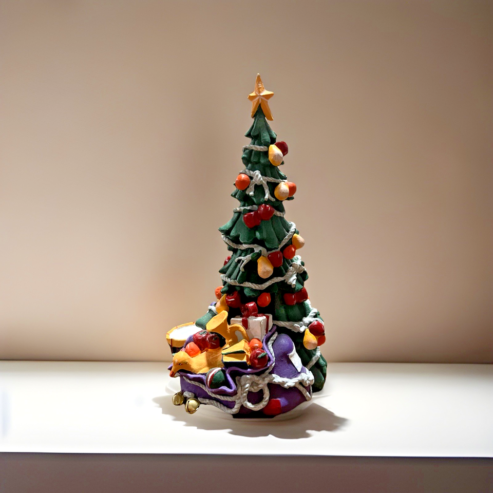 The Department 56 All Through the House Christmas Tree is a vintage collectible piece perfect for adding a festive touch to any room during the holiday season. This asymmetrical tree features a multicolor resin design, standing at 8 inches tall with a 5-inch base. Part of the All Through the House collection by Department 56, this Christmas village piece exudes a traditional seasonal charm. this medium-sized tree is suitable for furniture and is a perfect addition for adults looking to enhance their holiday decor with a nostalgic touch from the 1990s. no box tree only