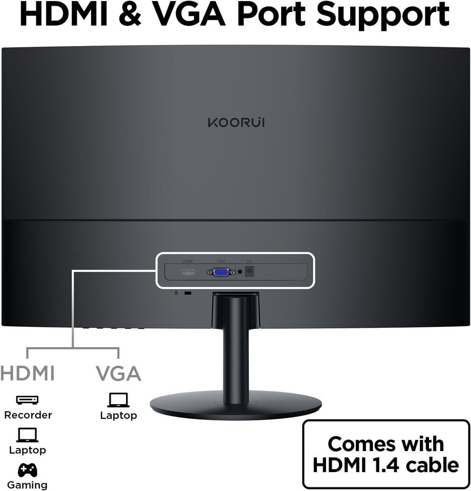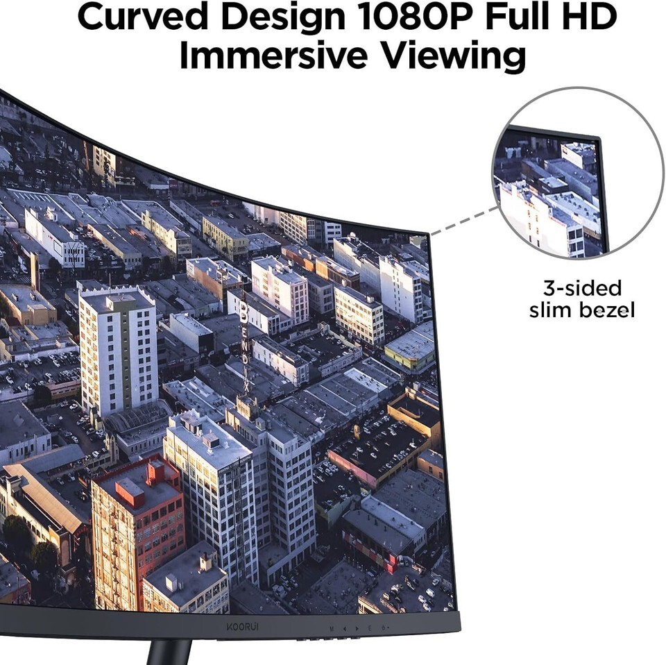 OUTSTANDING VISUALS: KOORUI 27 inch curved monitor FHD powered by VA technology with a maximum resolution of 1920 x 1080 at 75 Hz, brings your favorite movies screens and video games to life EASY ON THE EYES: The computer monitor use low blue mode and flicker-free technology to reduce harmful blue light and effectively alleviates eyes fatigue PANORAMIC VIEWING: The 1500R degree curved design, KOORUI 27 gaming monitors across an ultra-wide 178viewing angles,vibrant detail from practically any position with consistent color and image clarity maintained STUNNING COLORS: 16.7 Million display color with 3000: 1 dynamic contrast and 99%sRGB color gamut, this 27 inch gaming monitor provides you rich colors experience and gives you brilliant visuals VERSATILE CONNECTIVITY: This 27 inch desktop monitor provide video interfaces via HDMI and VGA ports. You can connect the KOORUI 27 inch curved monitors to Xbox, PC and laptops etc ADJUSTABLE TILT: This 27 adjustable monitor can also be tilted back 20 degrees and forward by 5 degrees.so that you can find the optimum angle to view the monitor screens KOORUI SUPPORT: The display screen is backed for 1 year, and other accessories for 3 years. Reach out to us for any queries or aid you require